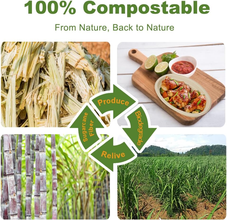 - Premium Quality: This disposable food containers are made of natural sugarcane fiber, heavy-duty compostable bowls are designed with superior strength and will not leak during use.