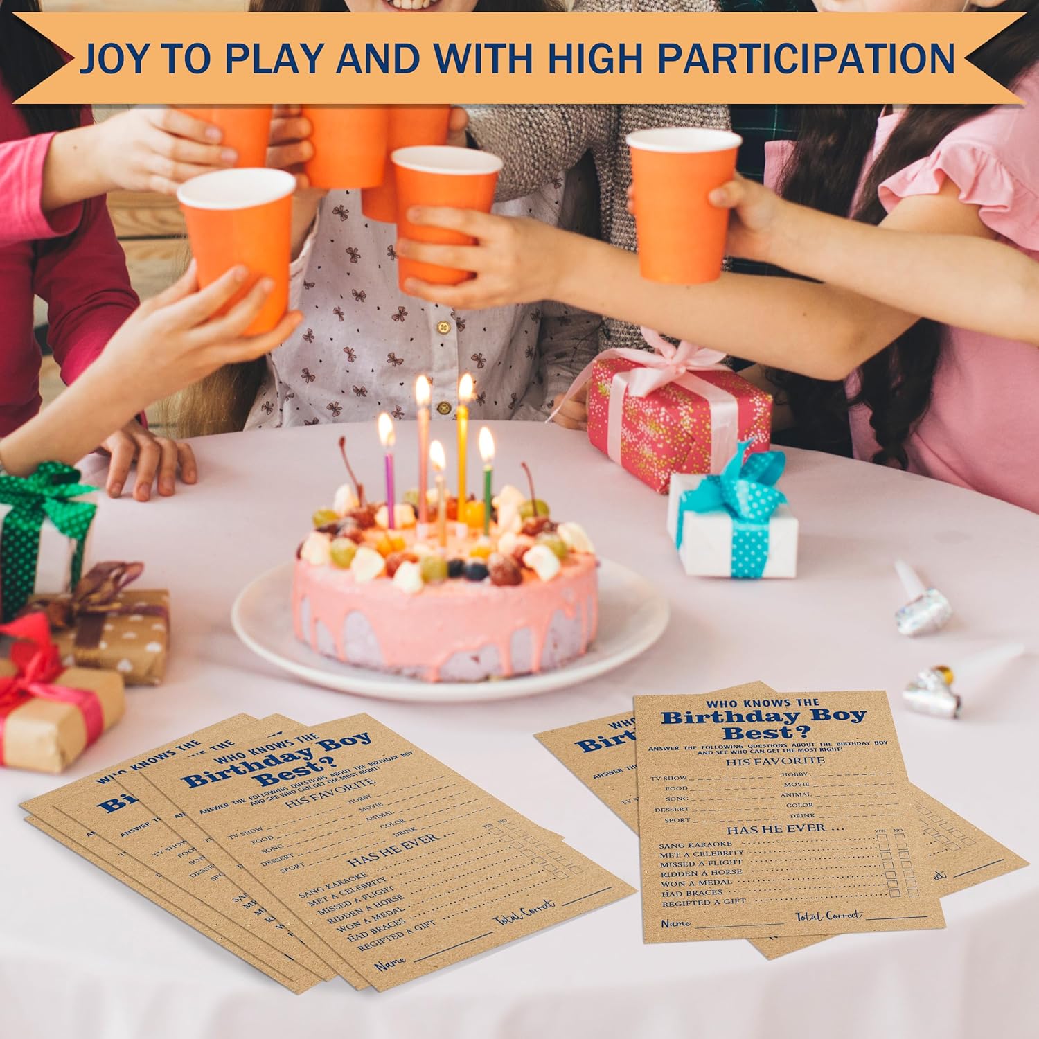 Who Knows The Birthday Boy Best Game Cards - Birthday Sleepover Party Supplies Activity Decorations for The Boy Card Game 5x7 Inch Set of 25 Cards (Double-Sided) - A01
