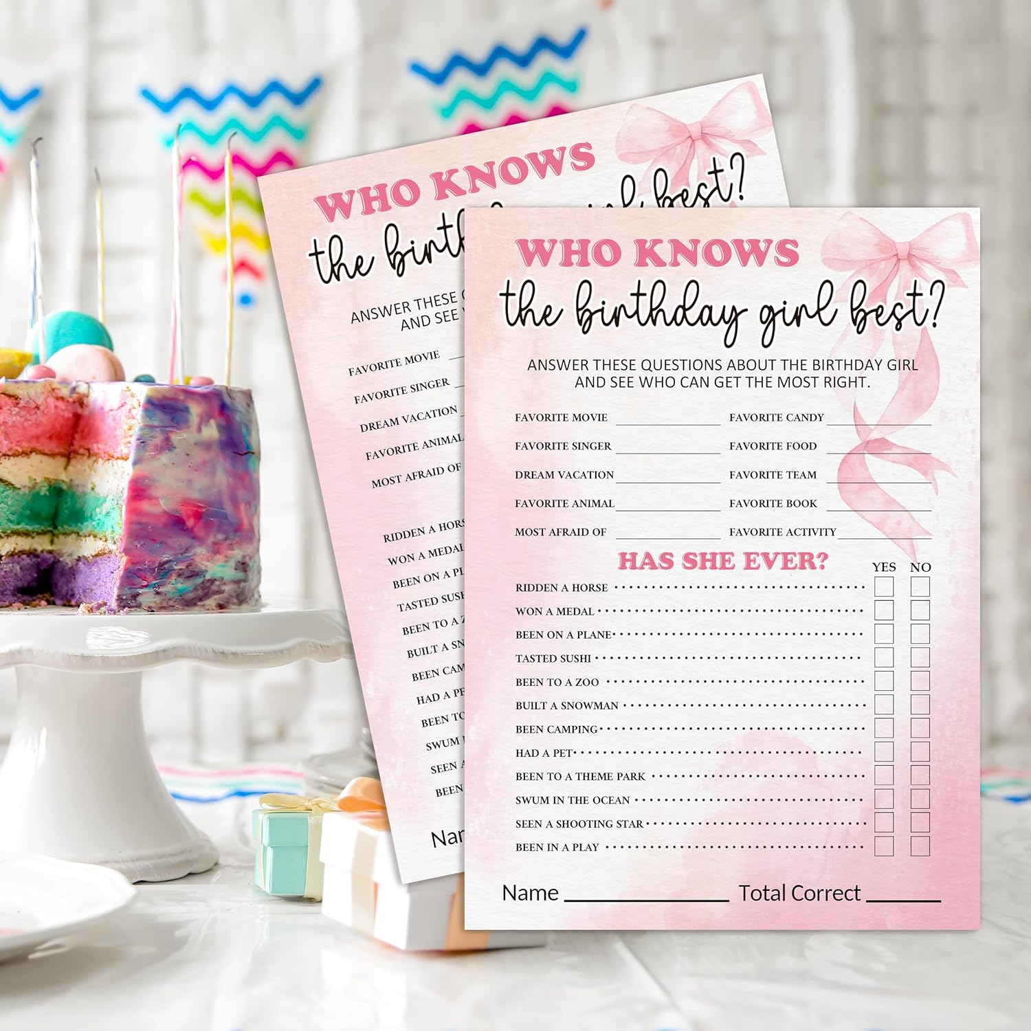 Birthday Party Games Card, Who Knows The Birthday Girl Best, Girls Sleepover Party Supplies for The Girls Card Game, 5x7 Inch Set of 25 Game Cards (Pink, Double-Sided) - A06