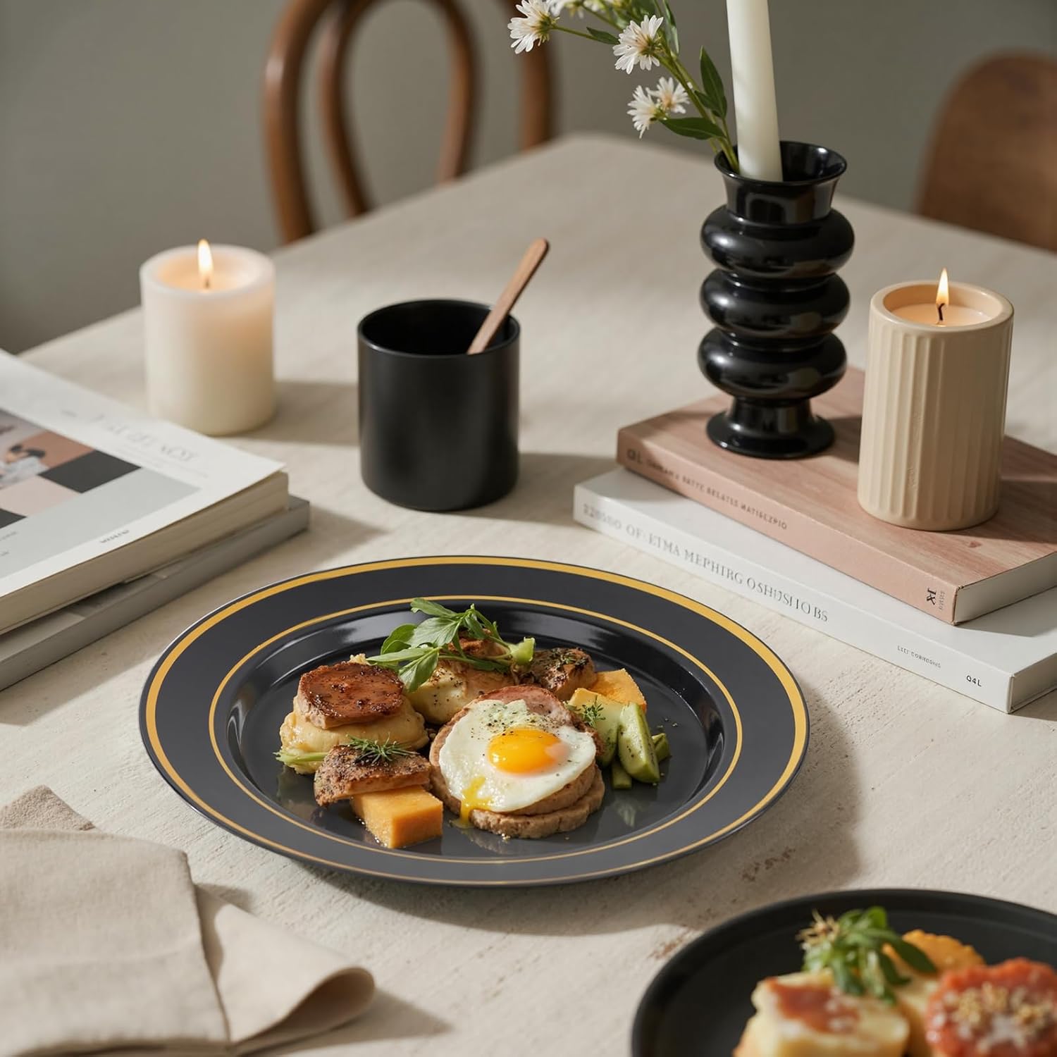 - Perfect for Parties & Celebrations: Whether you're hosting a birthday, wedding, anniversary, New Year or holiday gathering, these black and gold party plates are the ideal choice. Their stylish appearance complements themed decorations and adds a cohesive upscale look to your event without the hassle of cleanup.