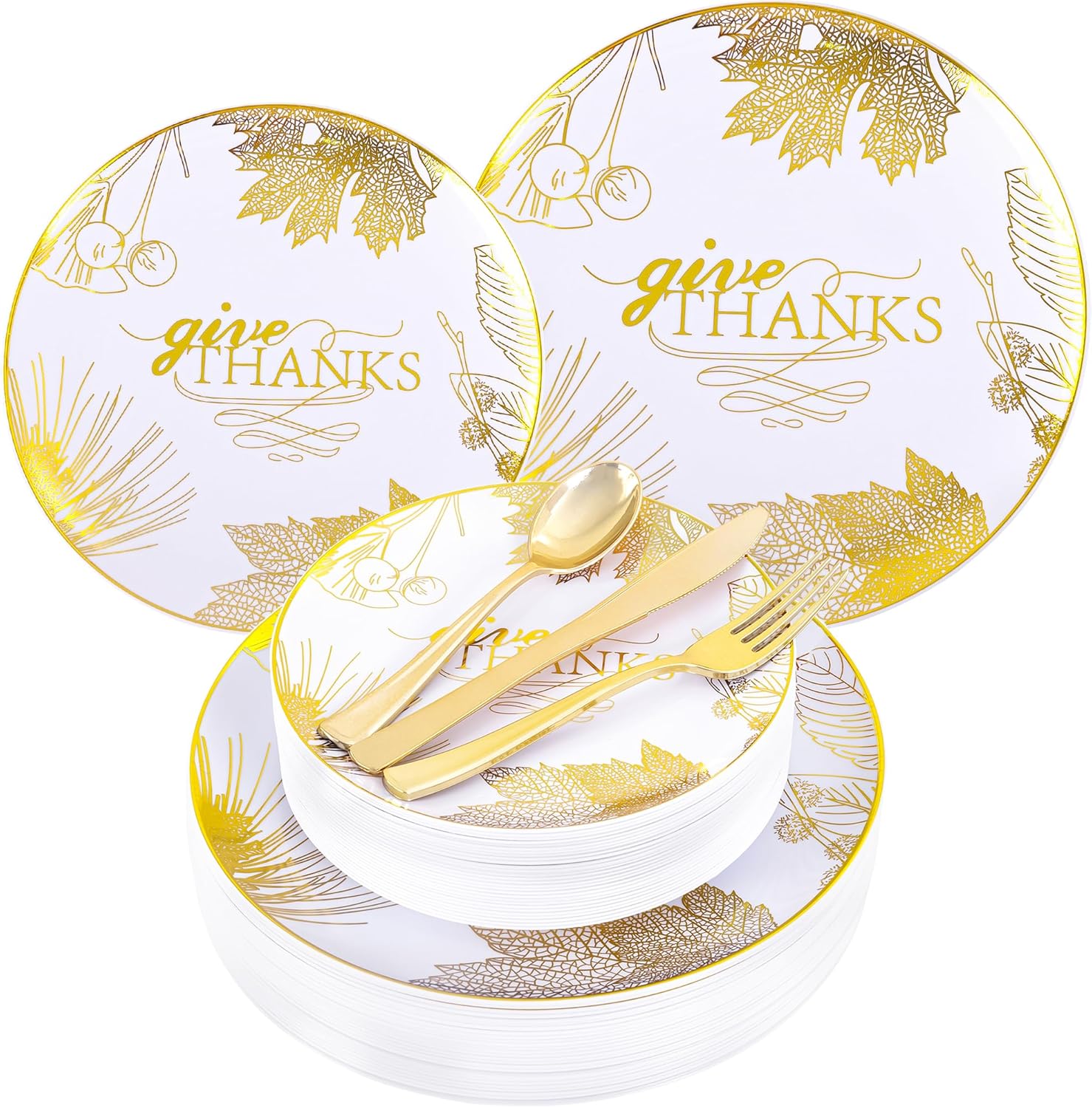- Premium Material for Durability: Crafted from sturdy plastic, our thanksgiving plates disposable hold up to generous servings of turkey, sides, and desserts. Unlike flimsy alternatives, they resist cracking and sagging—ideal for gold thanksgiving dinnerware sets that don’t compromise on quality