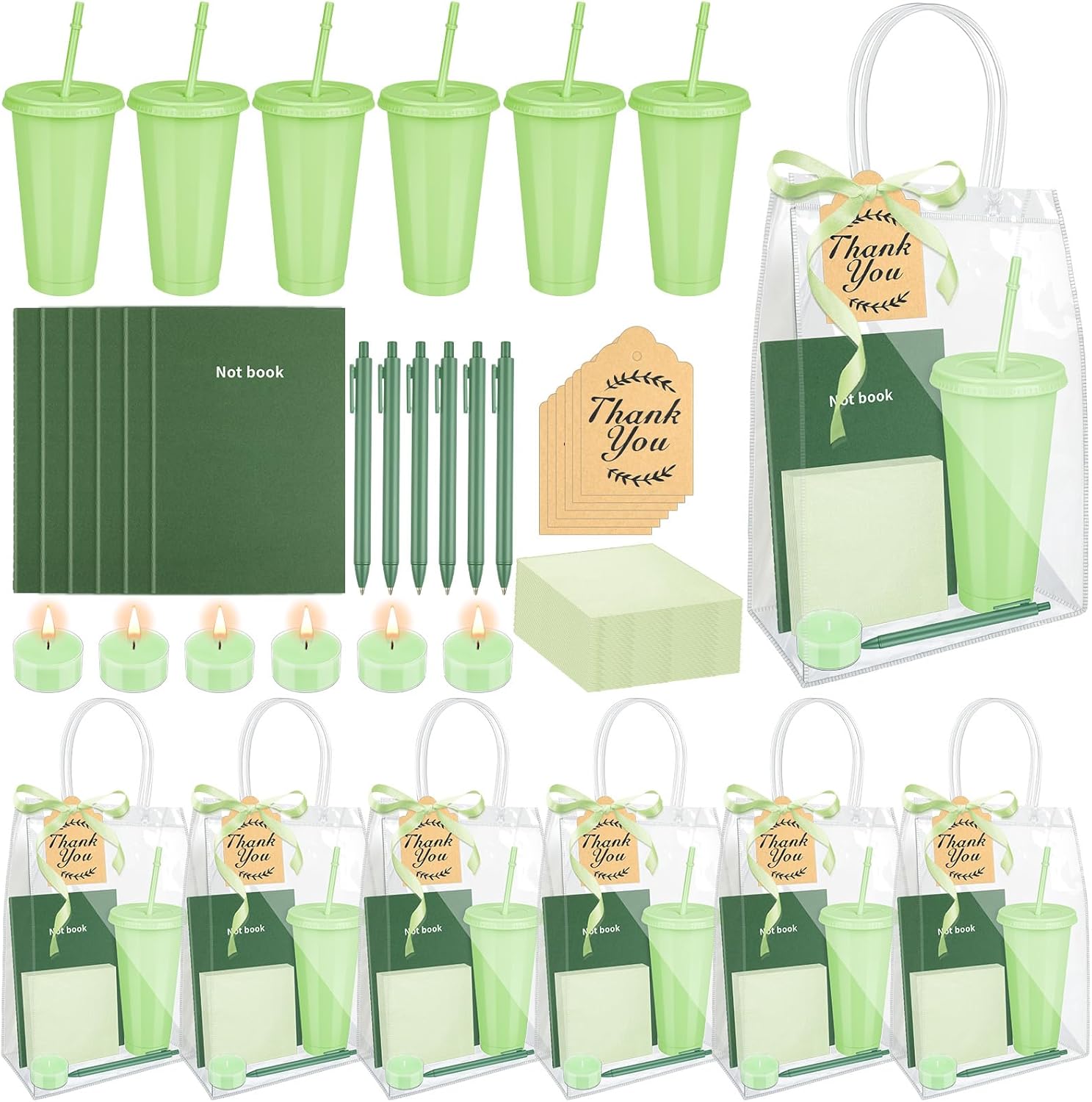 - Product Include:As a baby shower gift, you will receive 6 green pens, 6 cardboards, 6 napkins, 6 notebooks, 6 scented candles, 6 PVC plastic bags, a roll of ribbon, and 6 plastic cups, enough for you to assemble a suitable number of baby shower gift sets.