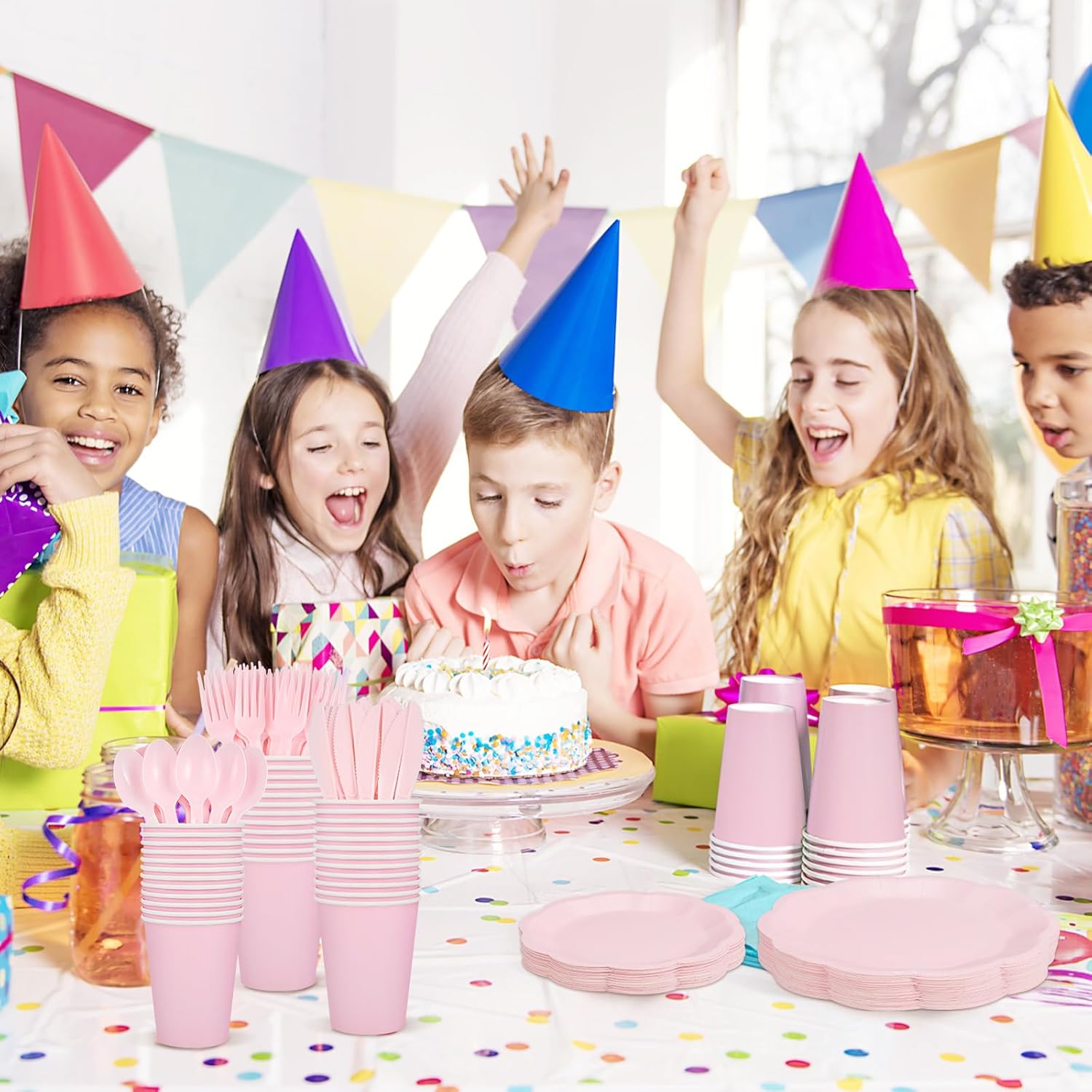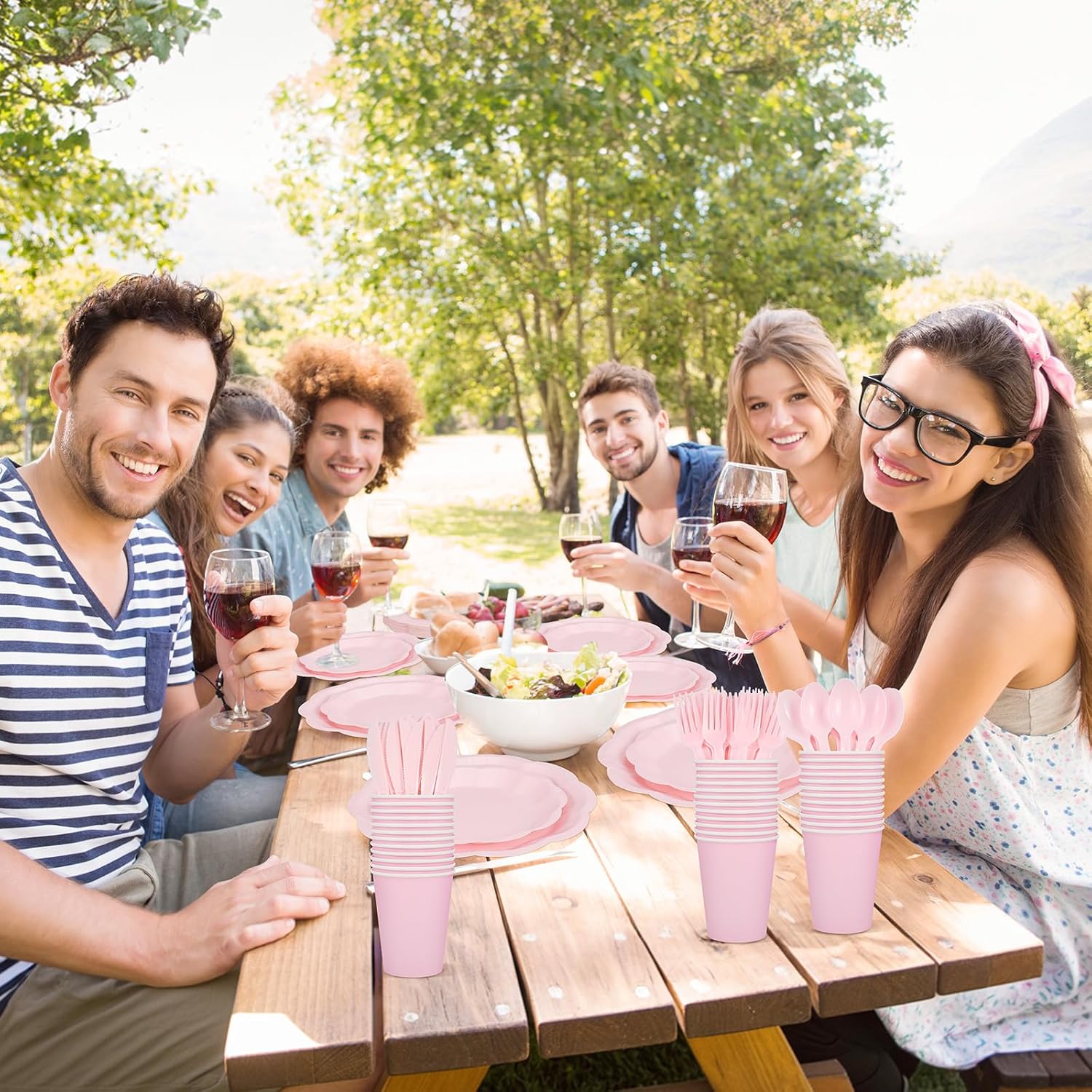 - 【Serves 50 Guests】You will receive 50 x 9 inch pink plates, 50 x 7 inch pink plates, 50 x paper cups, 50 x napkins, 50 x knives, 50 x forks, 50 x spoons, multiple quantity sets can meet your party needs and serve multiple guests