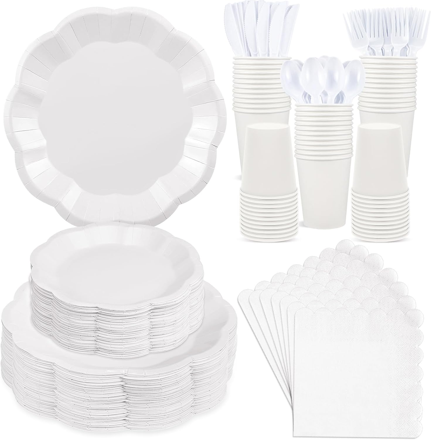 - 【Serves 50 Guests】You will receive 50 x 9 inch white plates, 50 x 7 inch white plates, 50 x paper cups, 50 x napkins, 50 x knives, 50 x forks, 50 x spoons, multiple quantity sets can meet your party needs and serve multiple guests