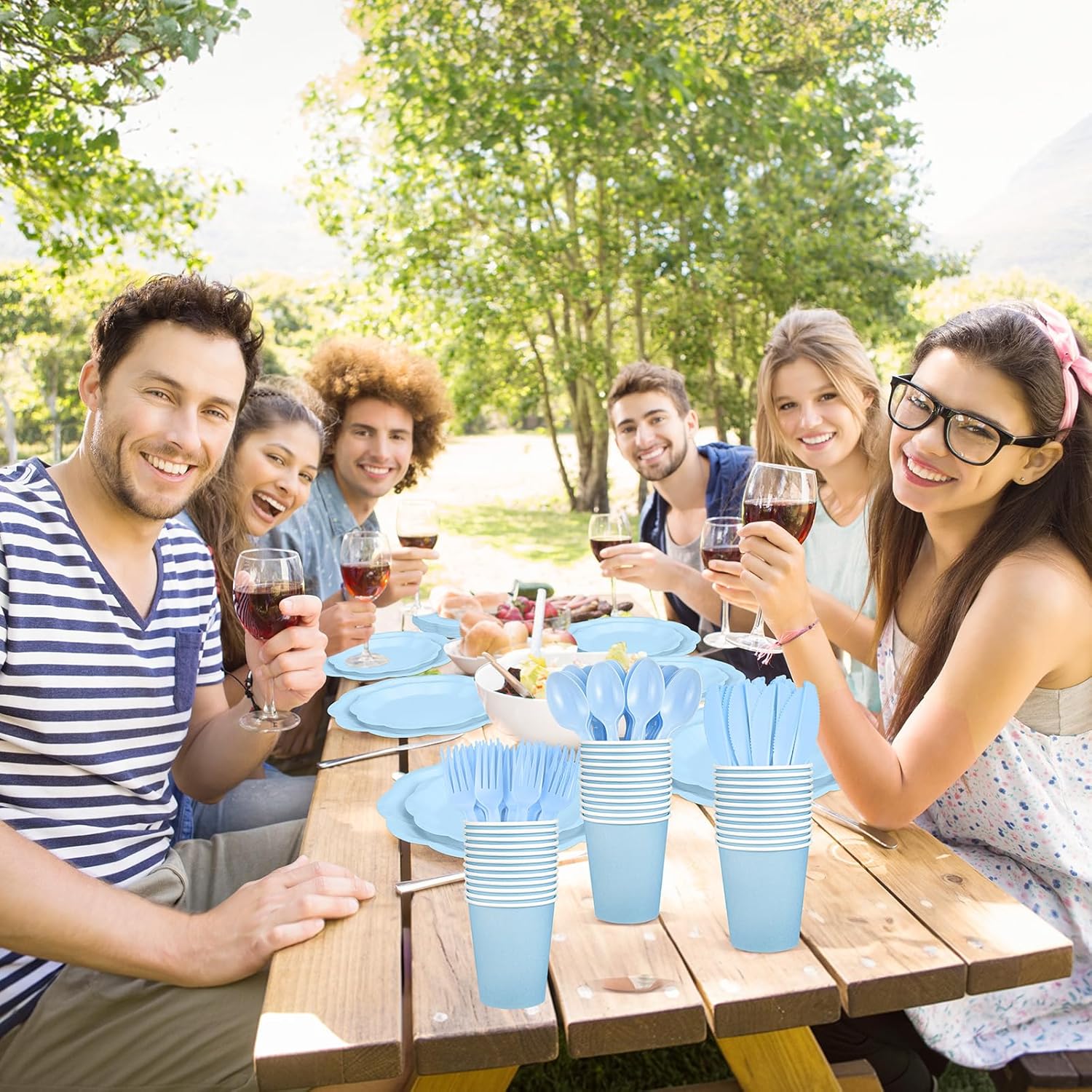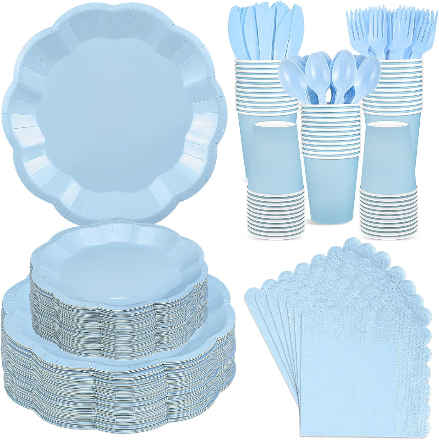 - 【Serves 50 Guests】You will receive 50 x 9 inch light blue plates, 50 x 7 inch light blue plates, 50 x paper cups, 50 x napkins, 50 x knives, 50 x forks, 50 x spoons, multiple quantity sets can meet your party needs and serve multiple guests