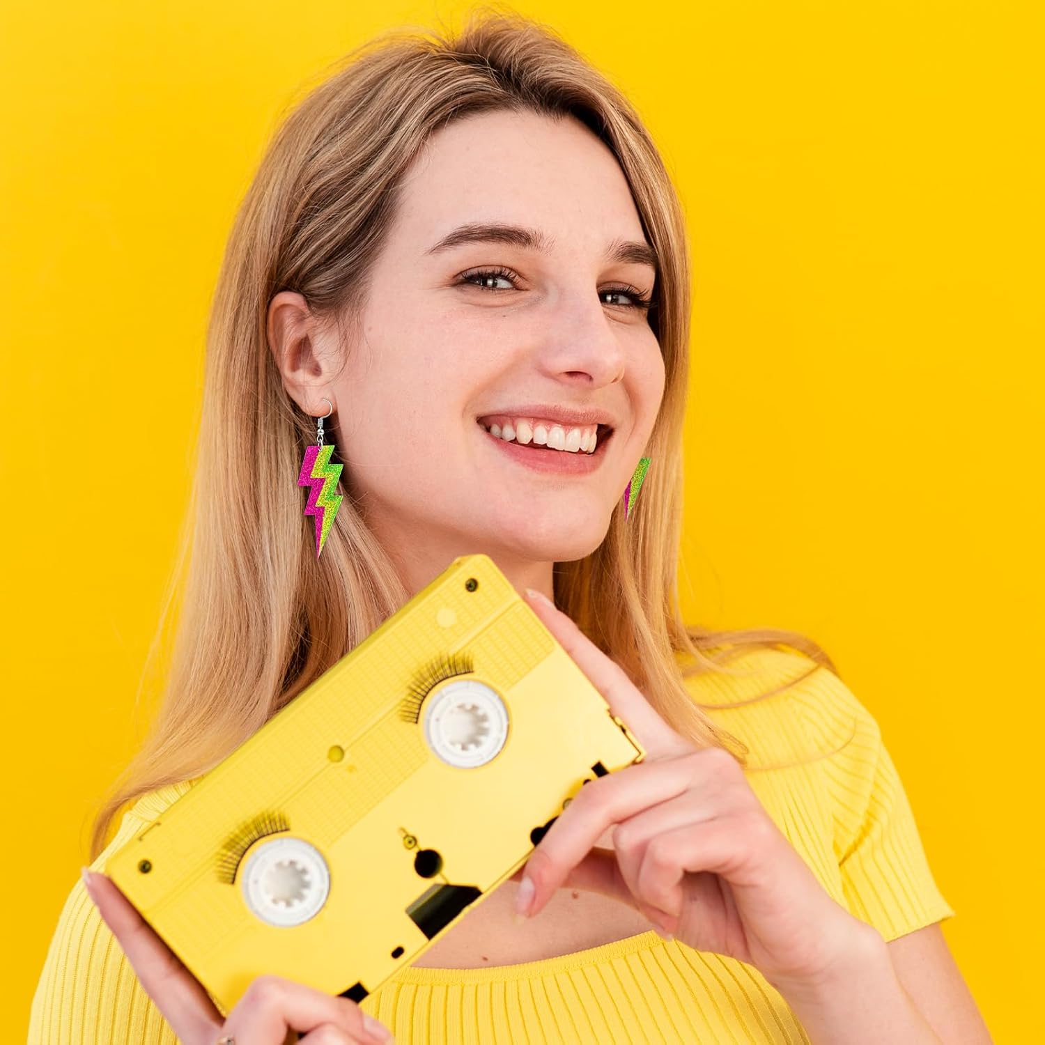 - Retro 80s Neon Earrings: Inspired by the bold and funky fashion of the 80s and 90s, these neon earrings feature playful lightning bolt design that captures the era's vibrant energy. The striking color contrast ensures you stand out at any party.