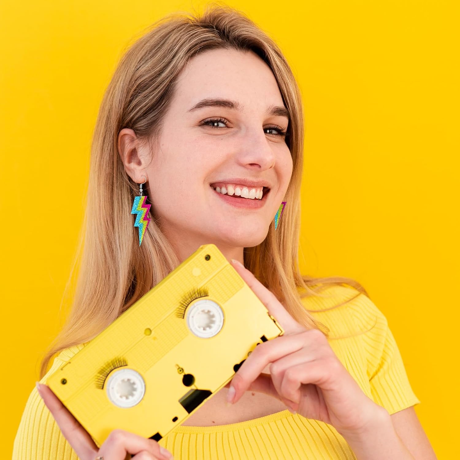 - Suitable for Parties & Costumes: These funky neon earrings are great accessories for 80s parties, neon-themed events, dance nights, and even everyday wear if you're feeling bold. The neon blue, yellow and hot pink lightning bolt make them versatile for both sweet and edgy styles.