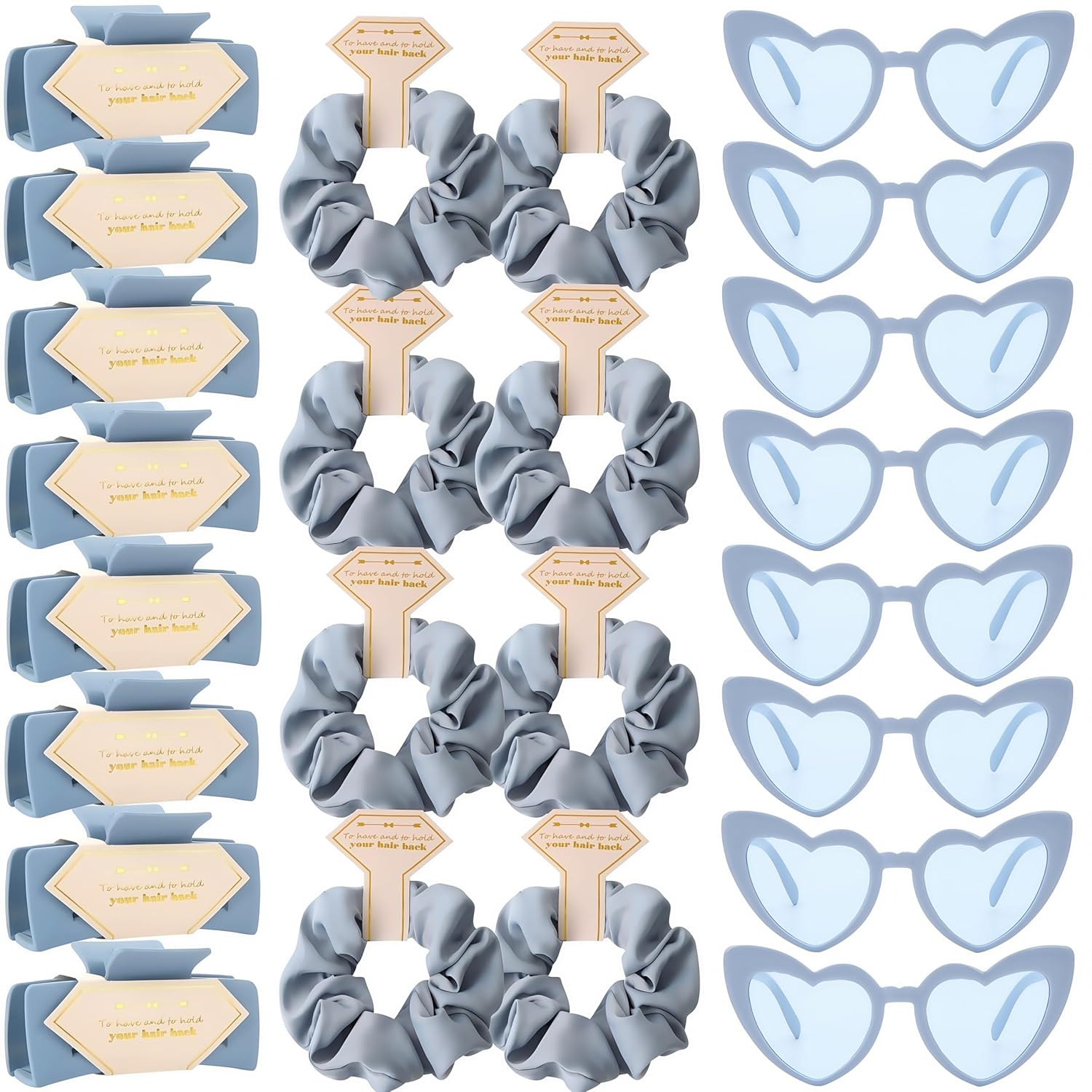 Bridesmaid Scrunchies Proposal Gifts Bachelorette Hair Claws Clips Girls heart sunglasses for Wedding Party Favors (Dusty Blue)