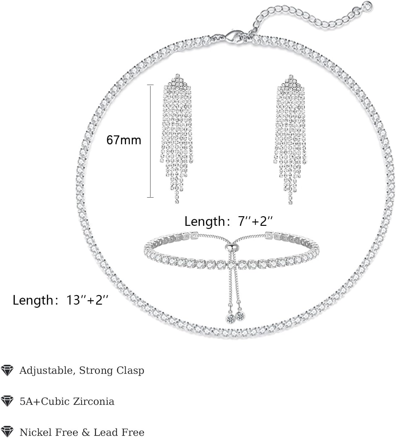 - Jewelry Set - Sterling Silver Rhinestone tennis necklace, tennis bracelets with Rhinestone Earrings Dangling for Women, will not fede or irritate your skin.