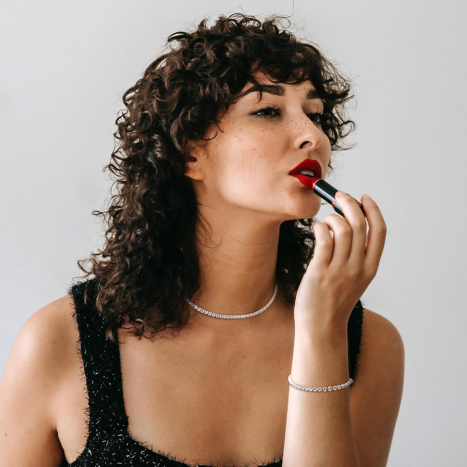 Tennis Necklace Bracelet for Women, Sterling Sliver, Dainty Chocker Necklace, Crystal Bracelet for Women, Wedding Jewelry for Bride, Sparkly Party Prom Hypoallergenic