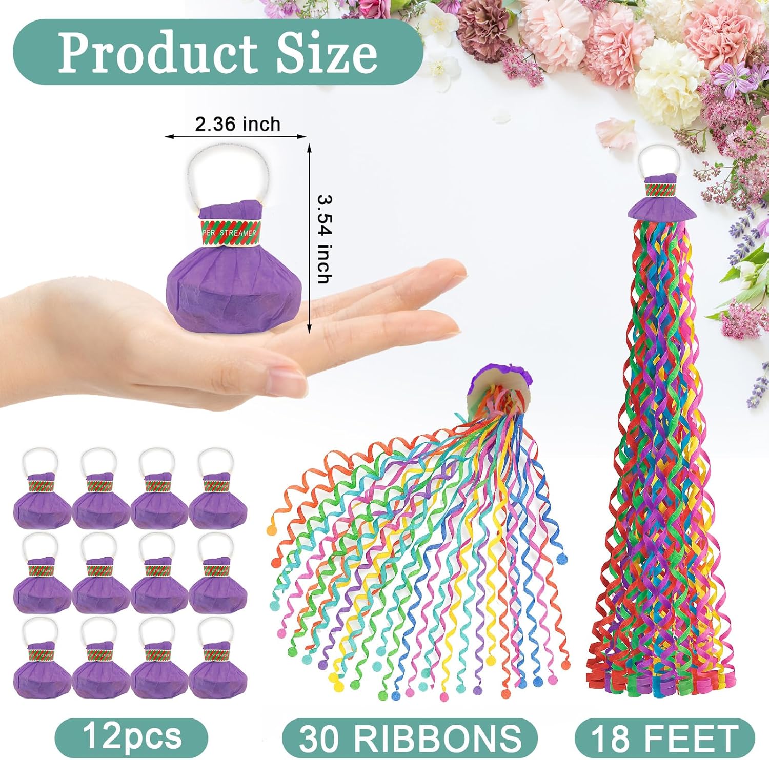 - Package Include: 12 pcs No Mess Confetti Popper each pack contains 30 colorful ribbons,the length can reach 17FT.