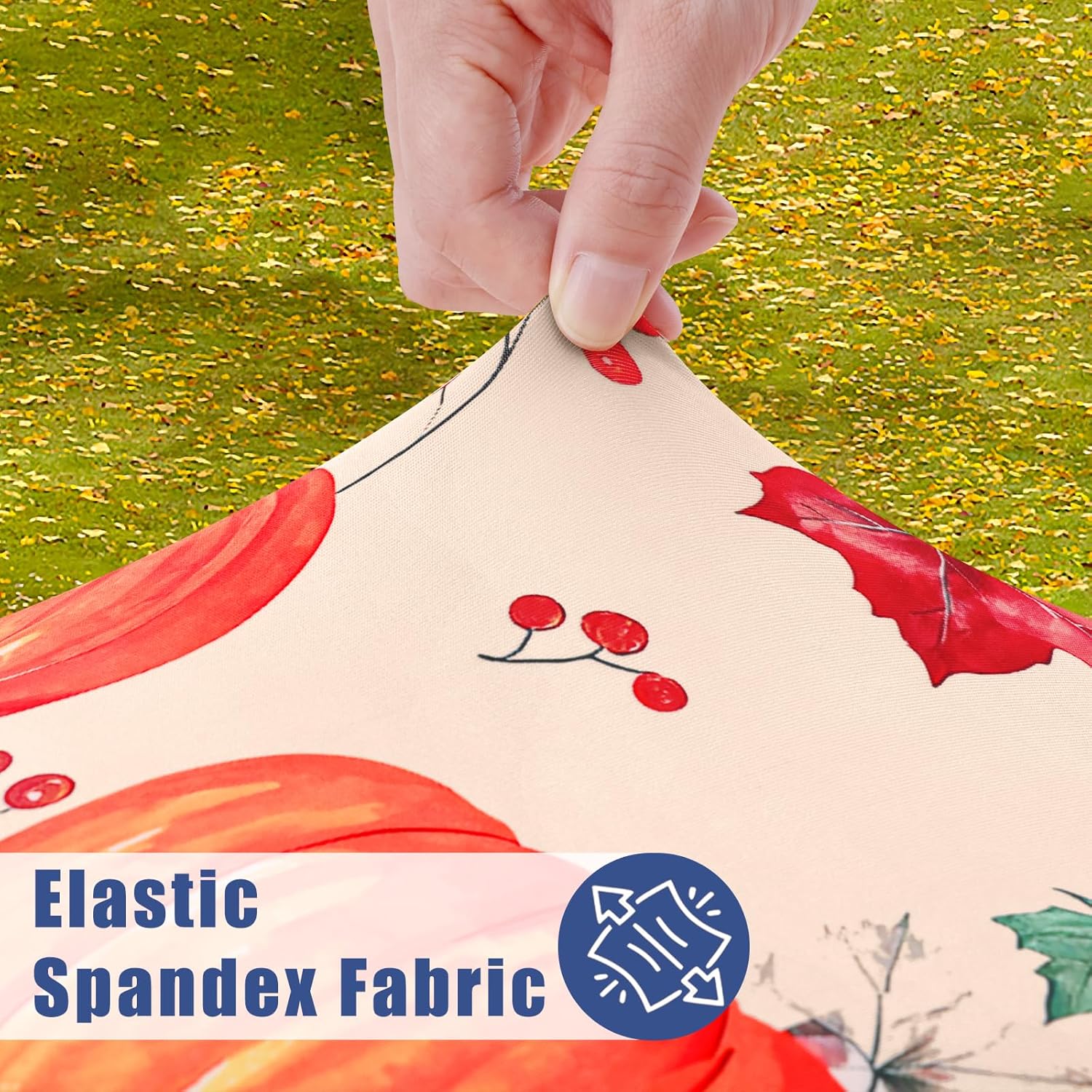 Spandex 6 Foot Rectangle Thanksgiving Table Cloth 2 Pack, Elastic Fitted Tablecloths for Picnic, Stretch Washable Patio Table Cover for Autumn Harvest Parties (Pumpkin Leaf, 30"x72")