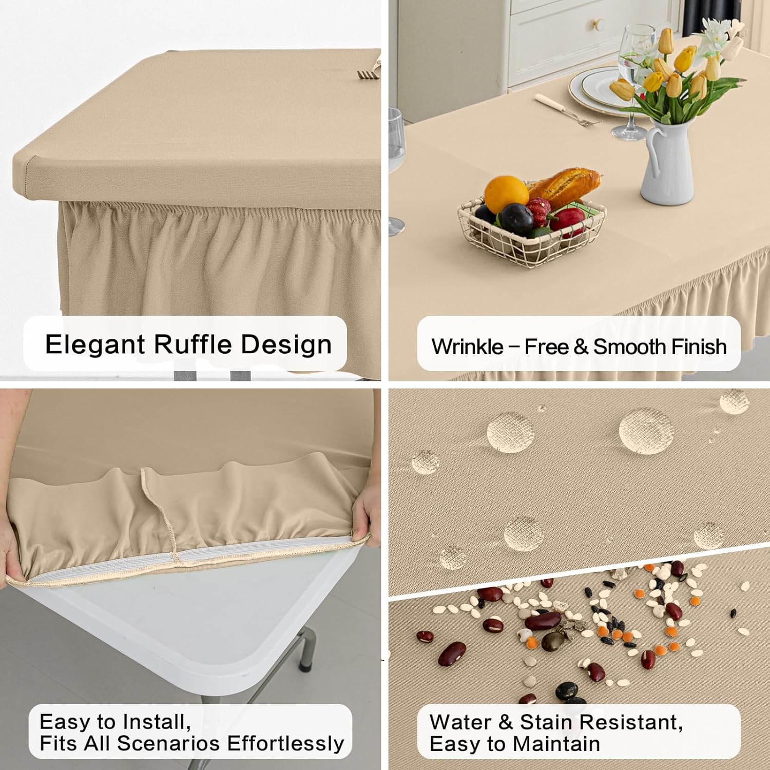 8ft Khaki Stretch Tablecloth for Rectangular Tables - Flared Wrap Design, Waterproof, Wrinkle-Resistant, Washable - Ideal for Weddings, Parties, Banquets & Table Protection