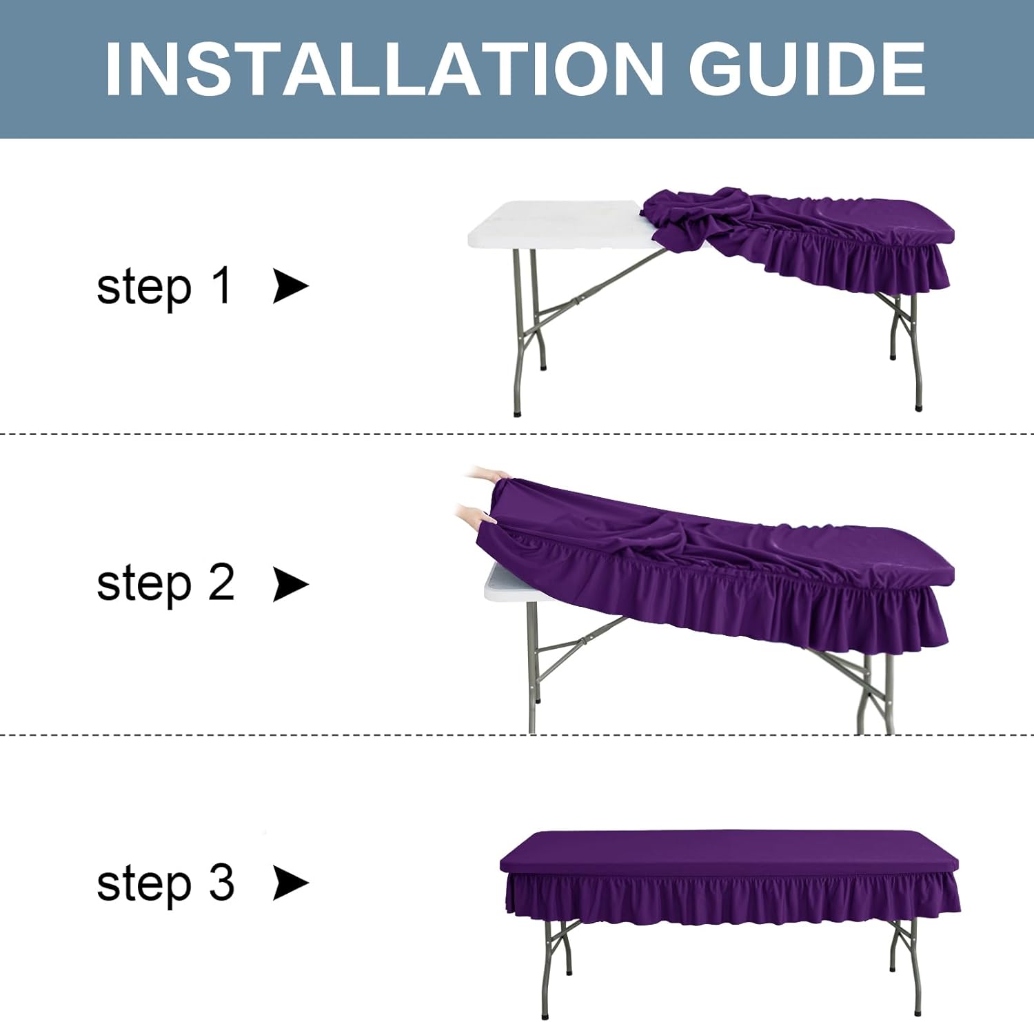 4ft Purple Stretch Tablecloth for Rectangular Tables - Flared Wrap Design, Waterproof, Wrinkle-Resistant, Washable - Ideal for Weddings, Parties, Banquets & Table Protection