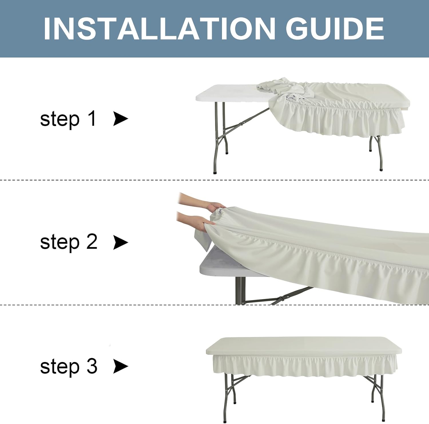 6ft Ivory Stretch Tablecloth for Rectangular Tables - Flared Wrap Design, Waterproof, Wrinkle-Resistant, Washable - Ideal for Weddings, Parties, Banquets & Table Protection