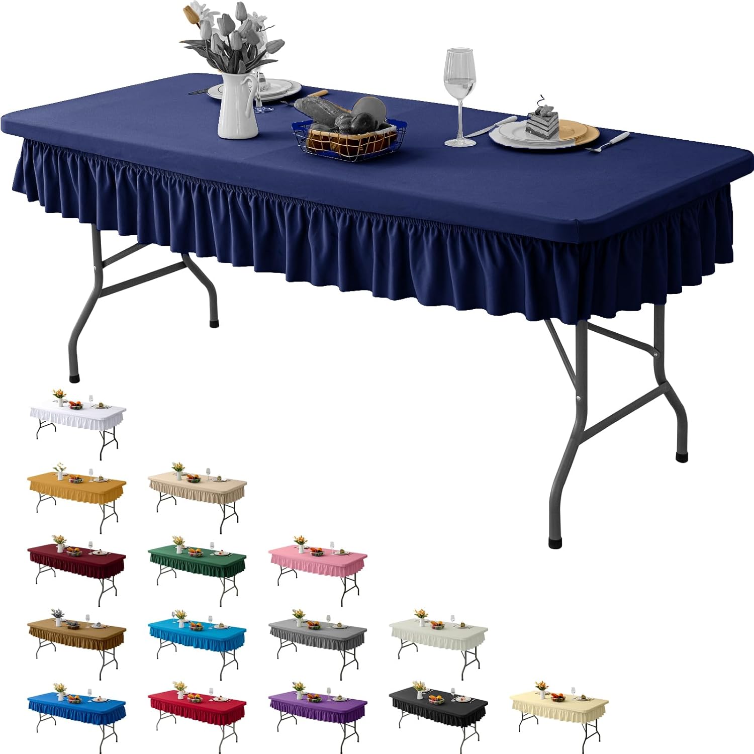 4ft Navy Blue Stretch Tablecloth for Rectangular Tables - Flared Wrap Design, Waterproof, Wrinkle-Resistant, Washable - Ideal for Weddings, Parties, Banquets & Table Protection