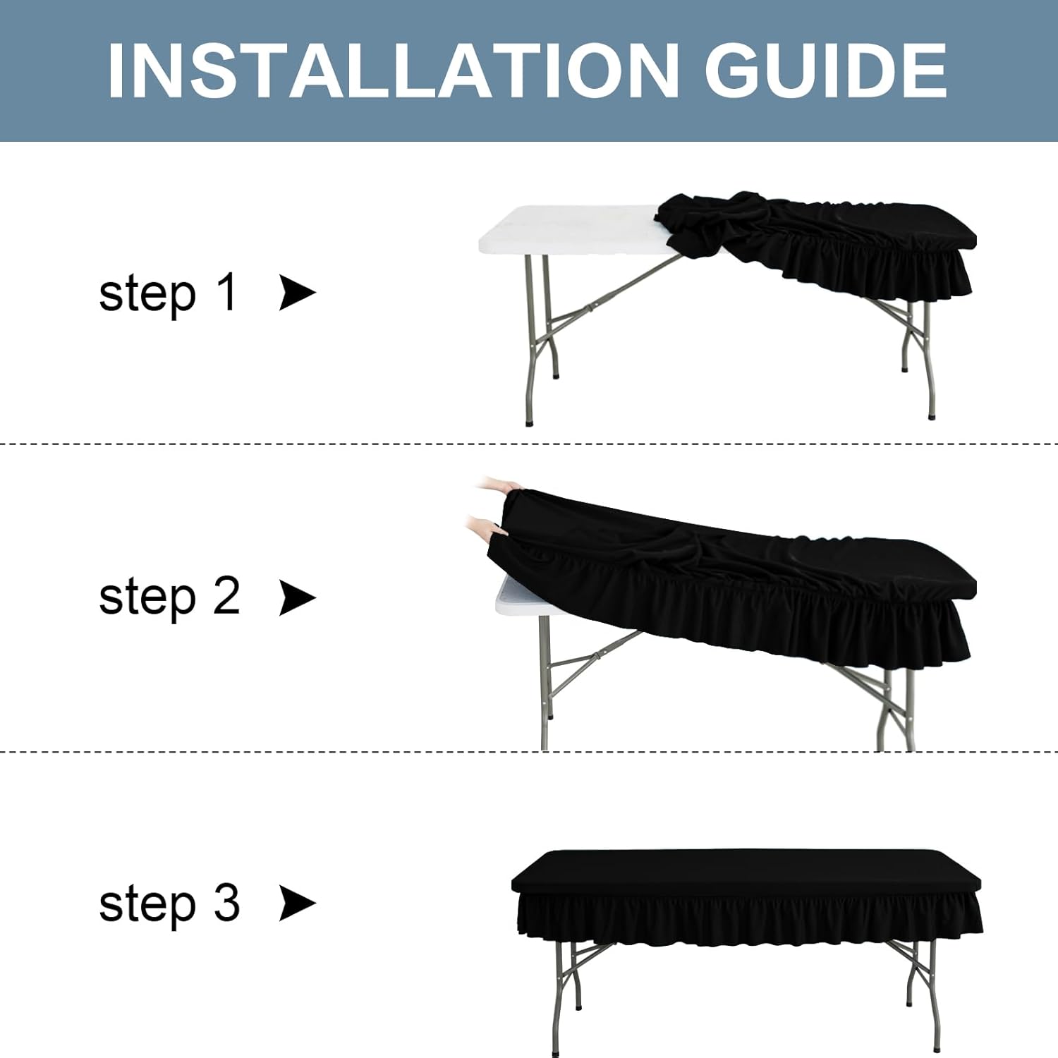 4ft Black Stretch Tablecloth for Rectangular Tables - Flared Wrap Design, Waterproof, Wrinkle-Resistant, Washable - Ideal for Weddings, Parties, Banquets & Table Protection