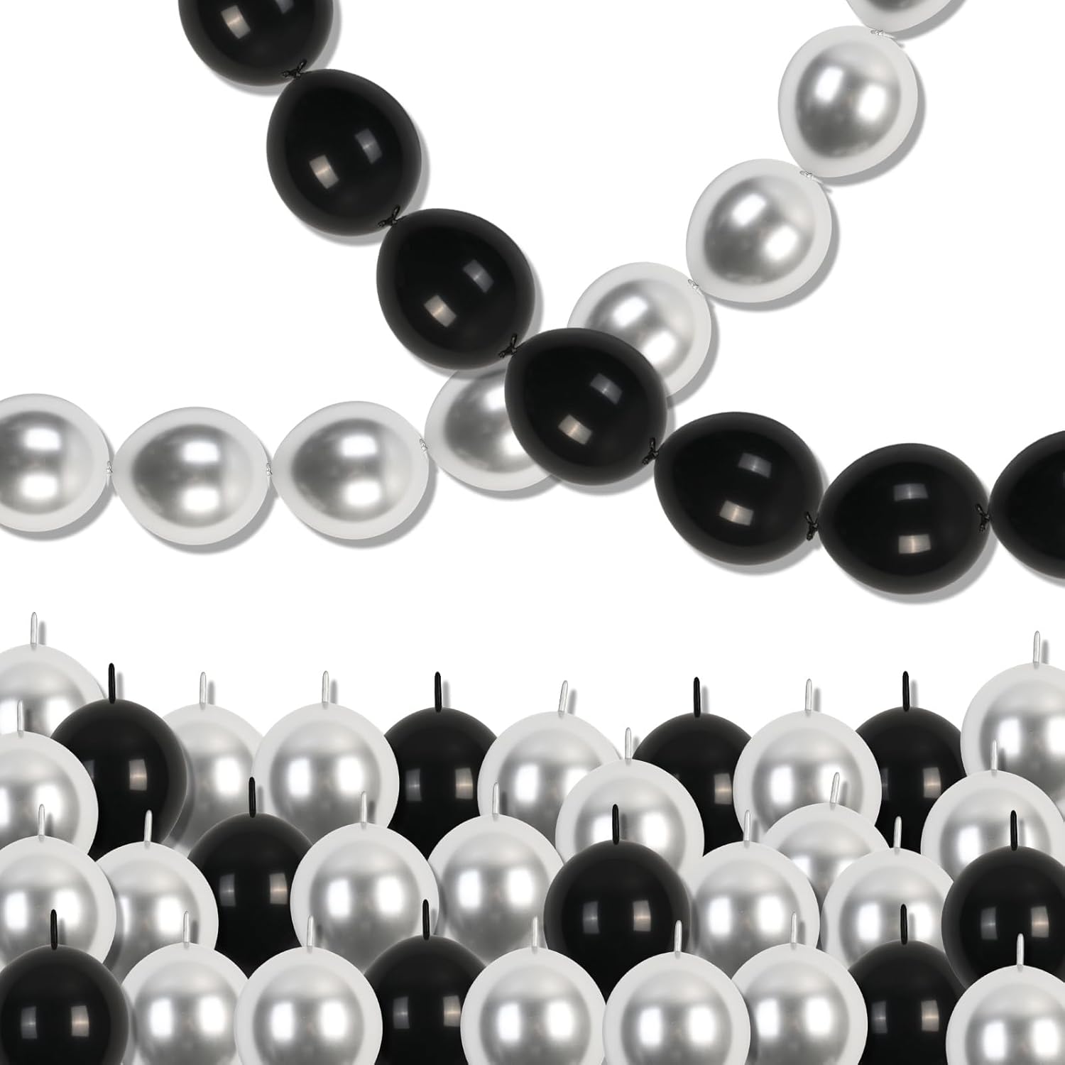 - Small Link Balloon Set - You will receive 100 pcs 6 inch black silver link balloons. Including black balloons 50pcs and silver balloons 50pcs. Our connecting balloons have a unique tail design that allows balloons link to be easily. More convenient and easier to assemble than regular balloons.