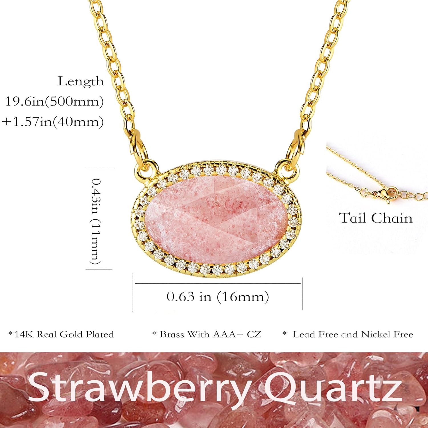 - Pendant Necklace for Women: The Pendant Necklace is made of 14k gold-plated brass chain and strawberry quartz that won't tarnish, You will never get bored with this necklace