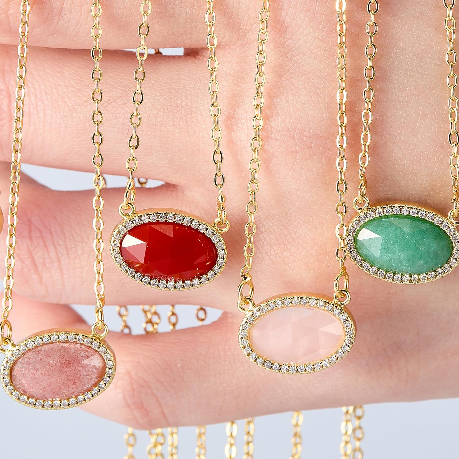 14K Gold Plated Pendant Necklace for Women Oval Cut Gemstone Crystal Pendant Necklaces Birthday Gifts for Women Mom Wife Friends