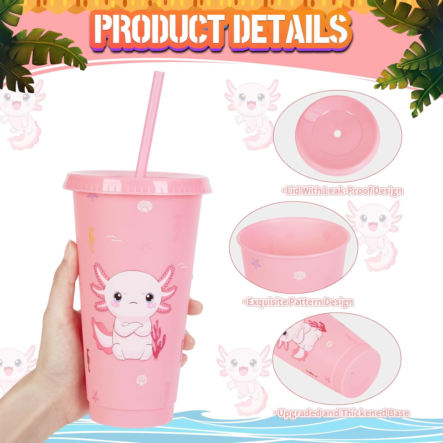- Easy to Use: Axolotl Cup Is About 7 Inches High And Has A Capacity Of 24 Oz /710 Ml, Suitable For All Kinds Of Cold Drinks And Room Temperature Beer, Soda, Etc. Lightweight And Portable, Kids Can Pick It Up Easily. Straw Design With Fixed Ring, Lid And Straw, Not Easy To Slip Out.
