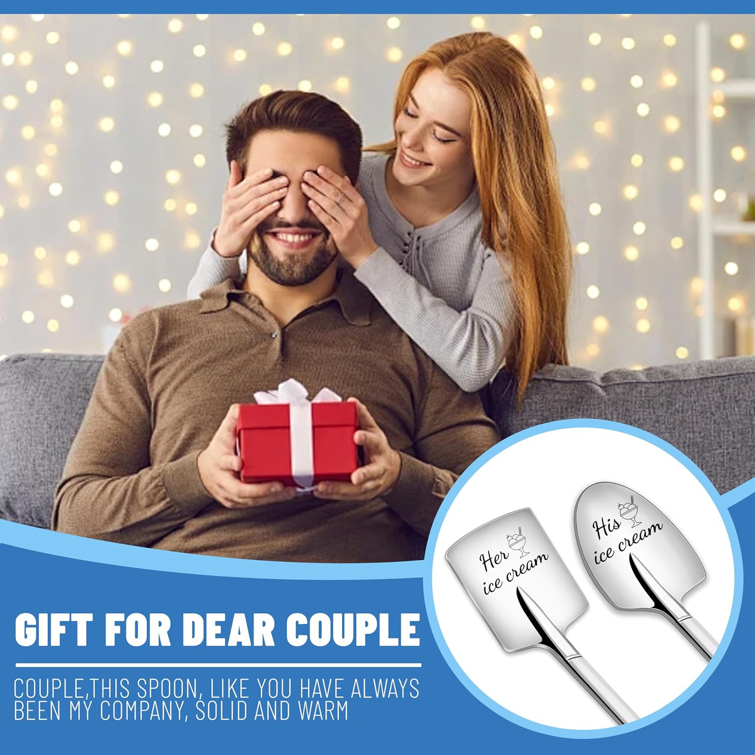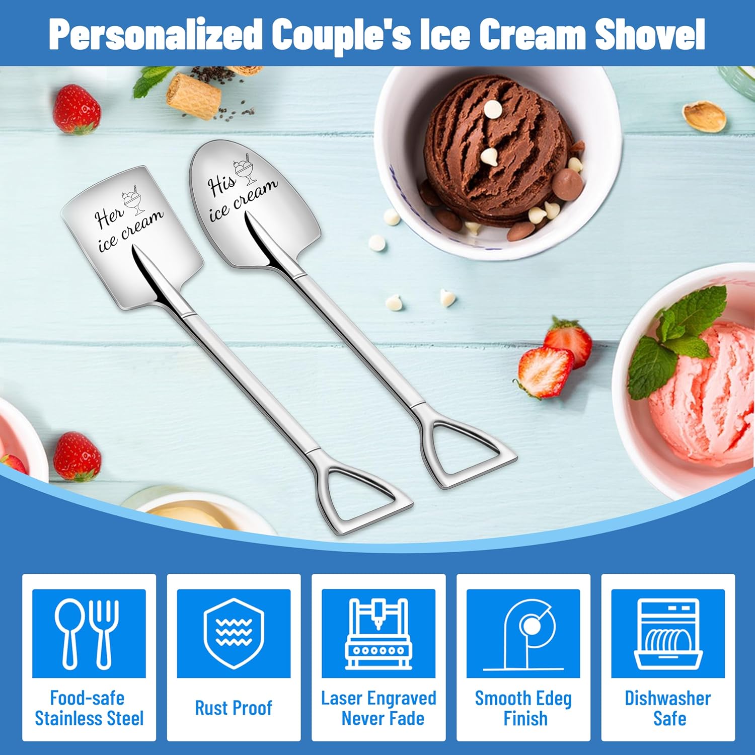 Gifts for Him Her - 2 Pcs His And Hers Gifts Ice Cream Spoons, Gift for Couple, Valentine's Shovel, Graduation Birthday Wedding Christmas Gift for Wife Husband Boyfriend Girlfriend Couple