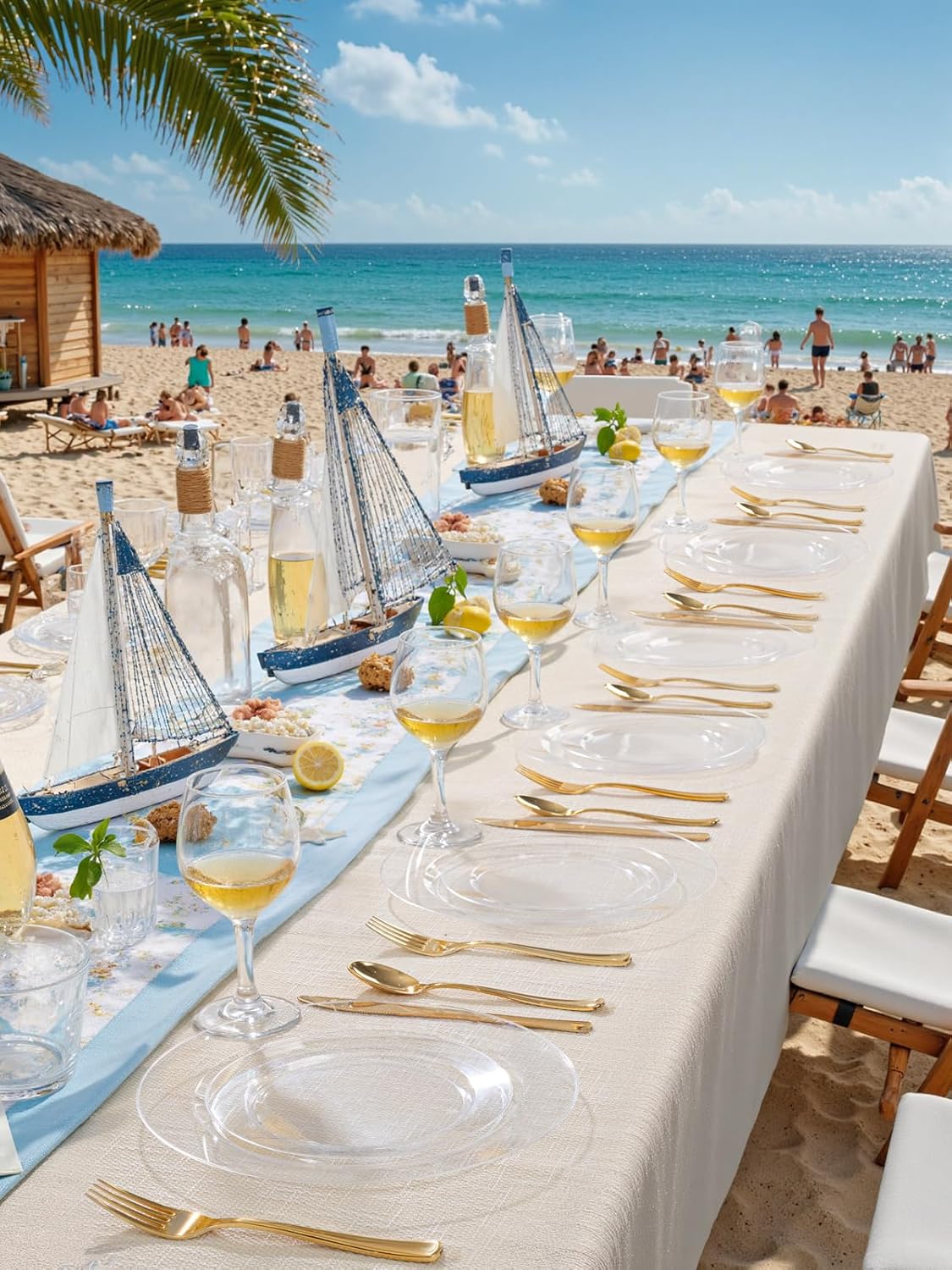 - Sleek, Versatile Shine: Our Clear plastic plates have glass-like transparency mirrors the ocean’s clarity, harmonizing with any beachy table setting. Perfect for weddings, seaside dinners, or even picnics, they infuse every occasion with understated luxury.