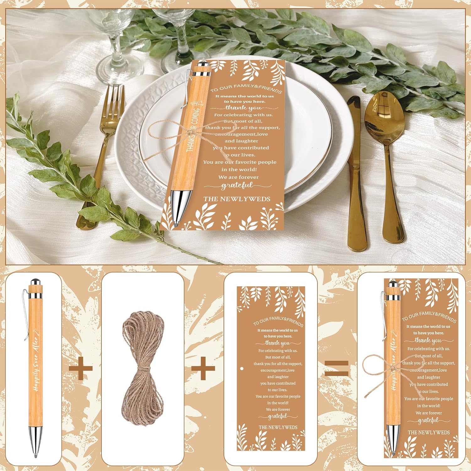 50 Sets Wedding Party Favors for Guests Bulk-50 Bridal Shower Gifts Bamboo Ballpoint Pens 50 Wedding Thank You Cards with Hemp Rope Recuerdos Para Boda Keepsakes Souvenirs