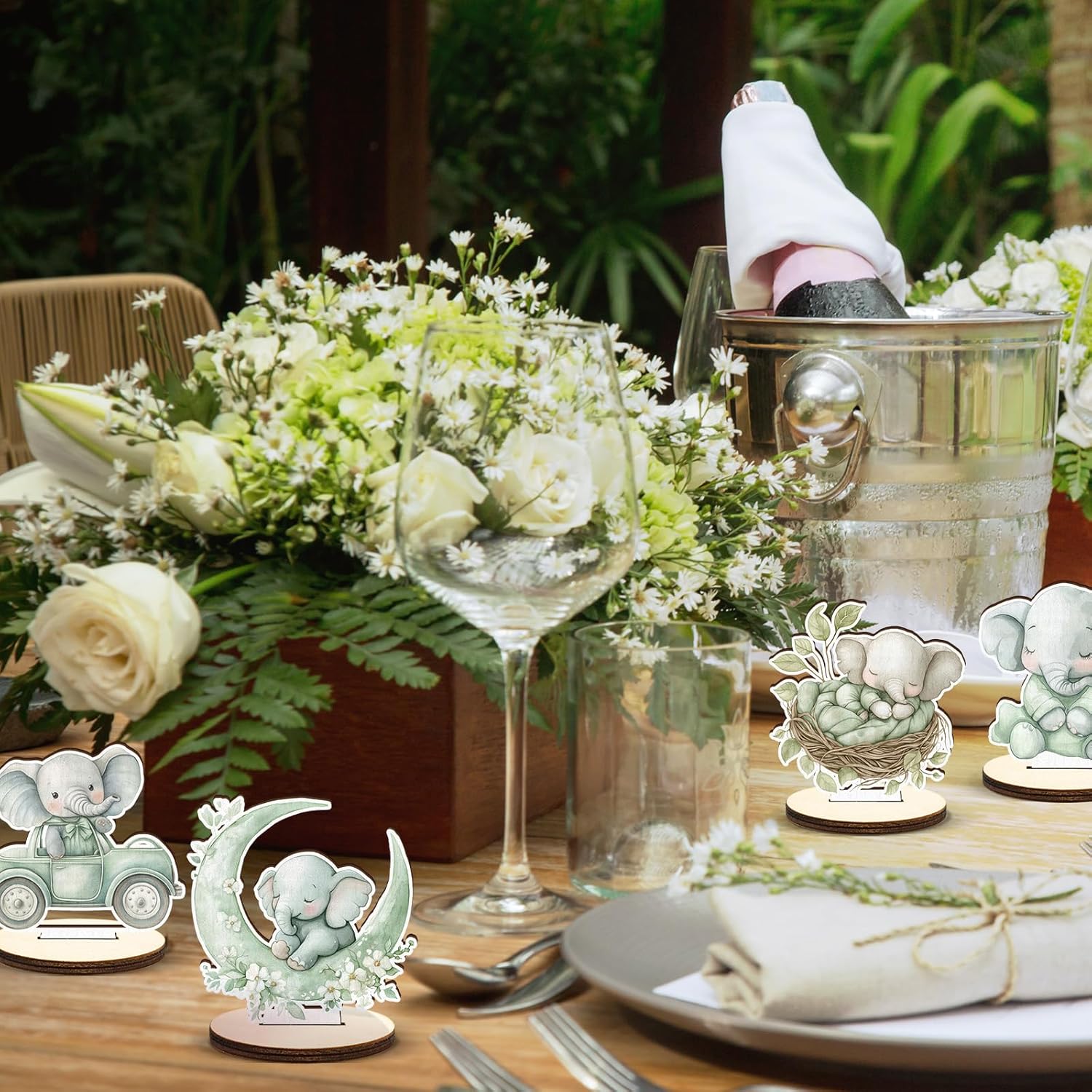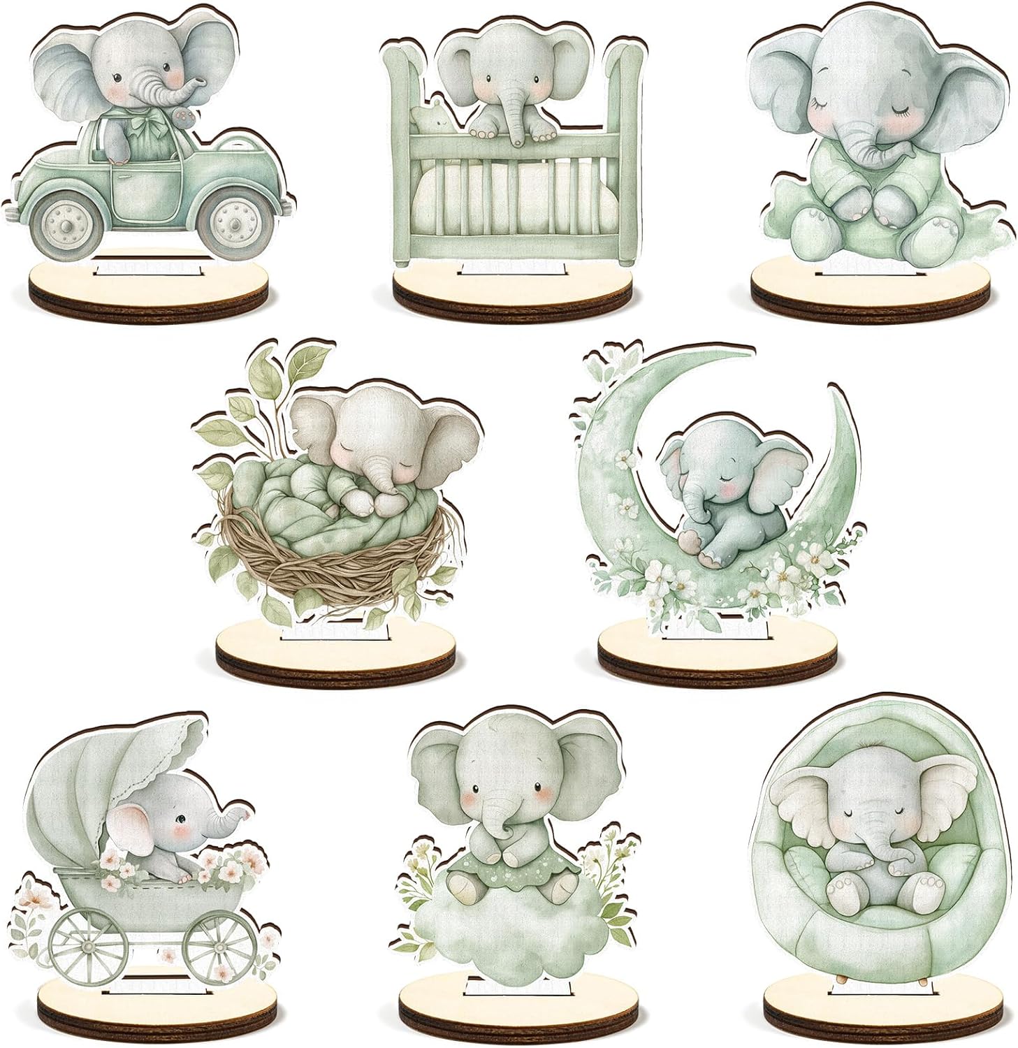 - Sage Green Elephant Baby Shower Table Centerpieces Set: You will get 16 pcs wooden green elephant cutouts (8 styles, each style 2 pcs), sufficient quantities can meet your diversified decoration and matching needs, cute design can easily light up your elephant theme baby shower birthday party.
