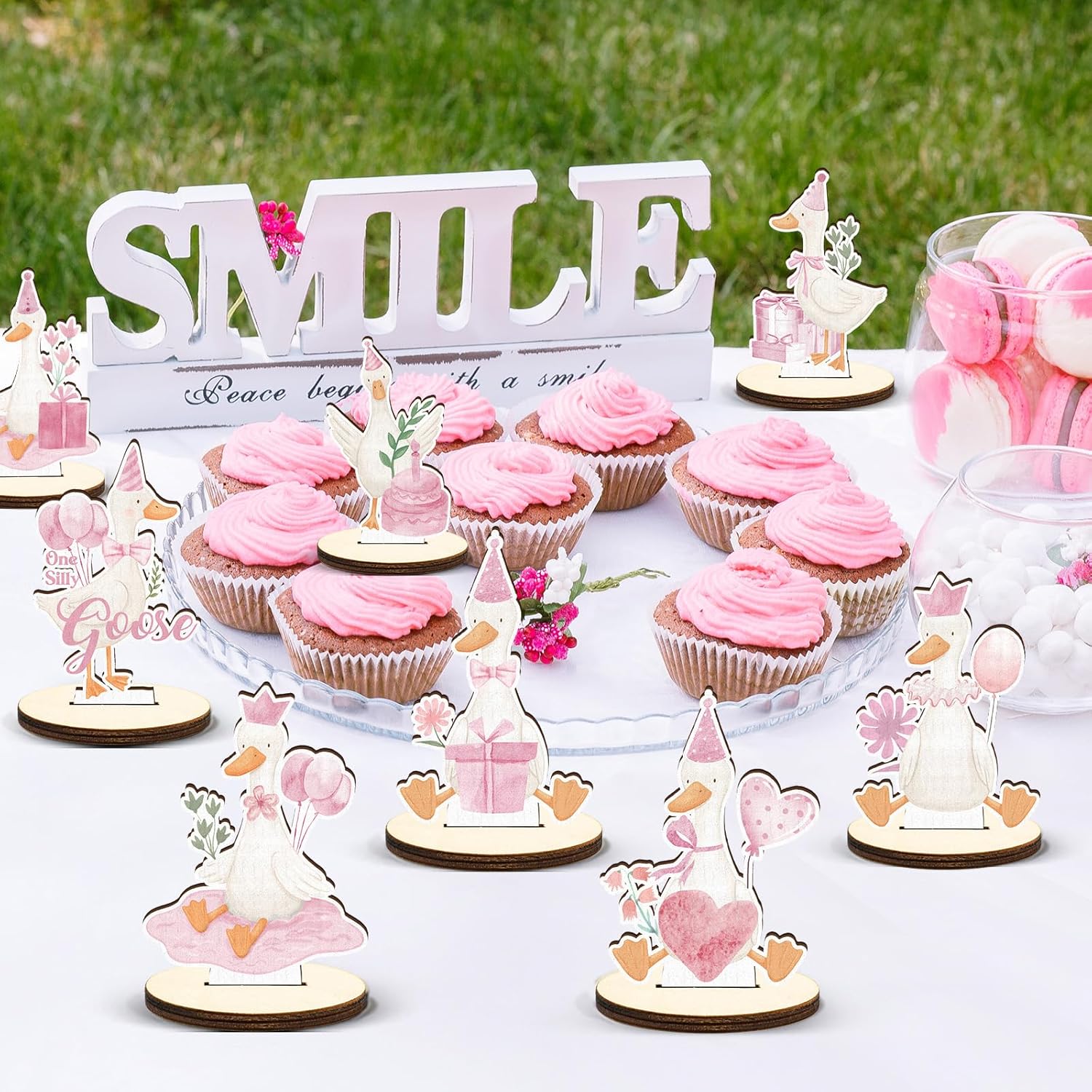 - One Silly Goose Baby Shower Table Centerpieces Set: You will get 16 pcs wooden pink goose cutouts (8 styles, each style 2 pcs), sufficient quantities can meet your diversified decoration and matching needs, cute design can easily light up your 1st birthday baby shower party.