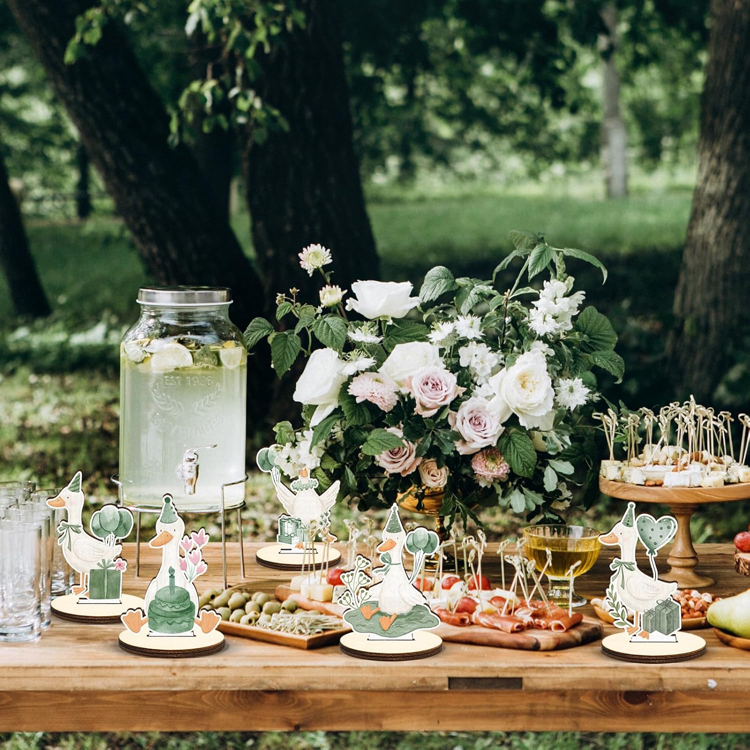 - One Silly Goose Baby Shower Table Centerpieces Set: You will get 16 pcs wooden green goose cutouts (8 styles, each style 2 pcs), sufficient quantities can meet your diversified decoration and matching needs, cute design can easily light up your 1st birthday baby shower party.