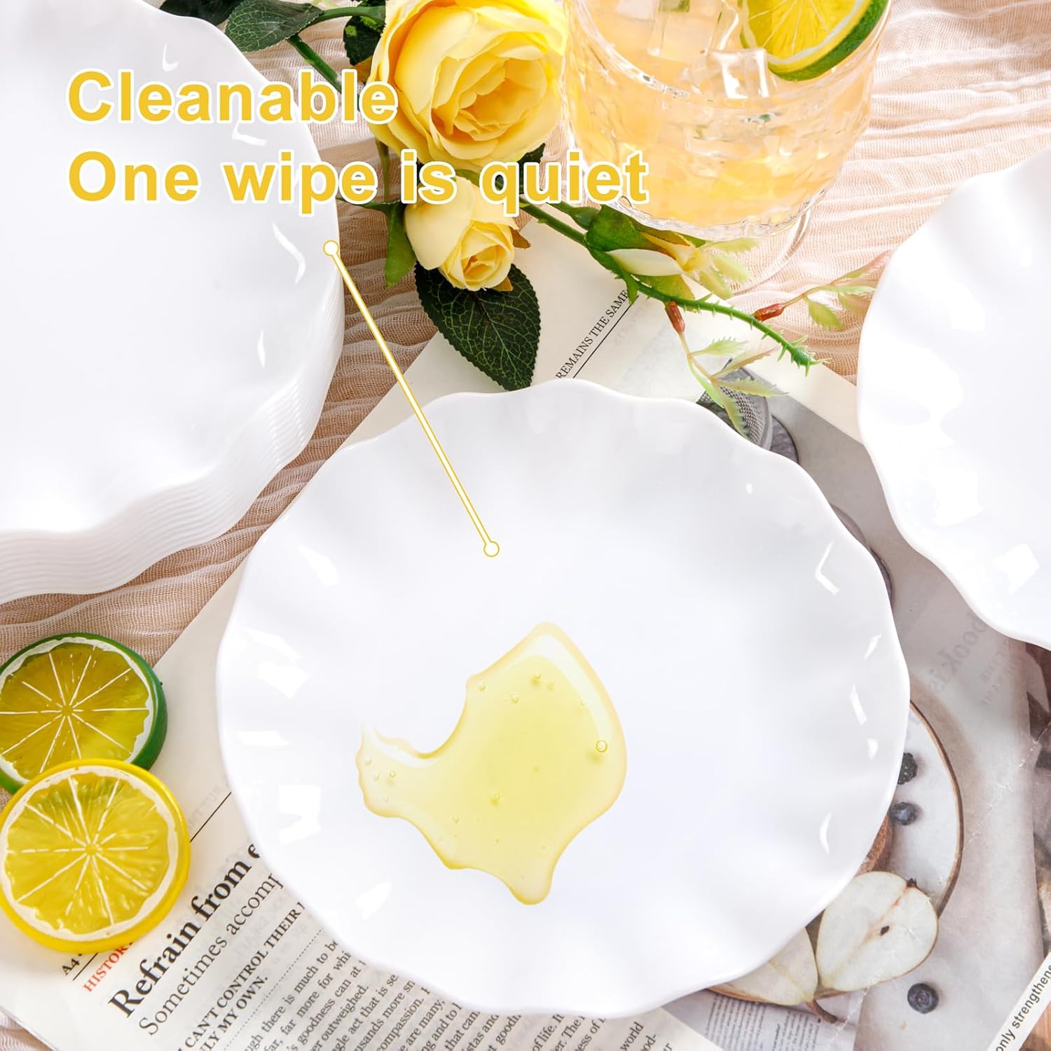- 【Light luxury white plastic plates】The classic plastic cream plates reusable,paired with exquisite scalloped edges,instantly elevates the dining table style for weddings,bridal showers,or holiday parties creating a high-end banquet visual experience.The unique beige and yellow color scheme perfectly blends with themed decorations such as weddings,creating a relaxed and luxurious atmosphere for buffet and dessert tables!