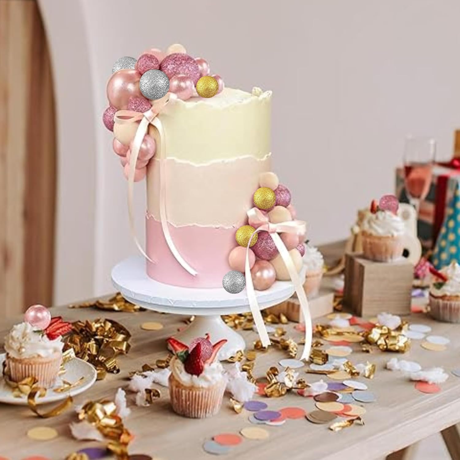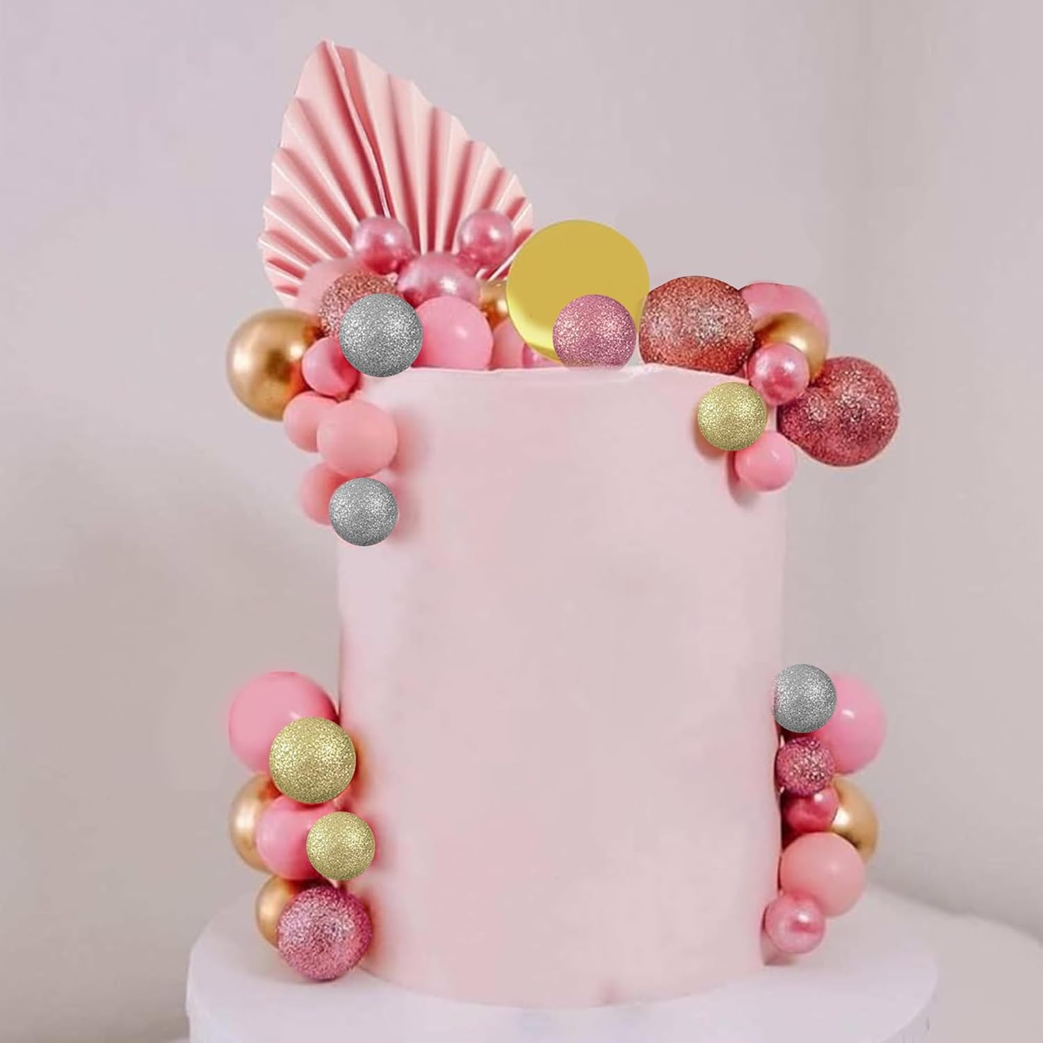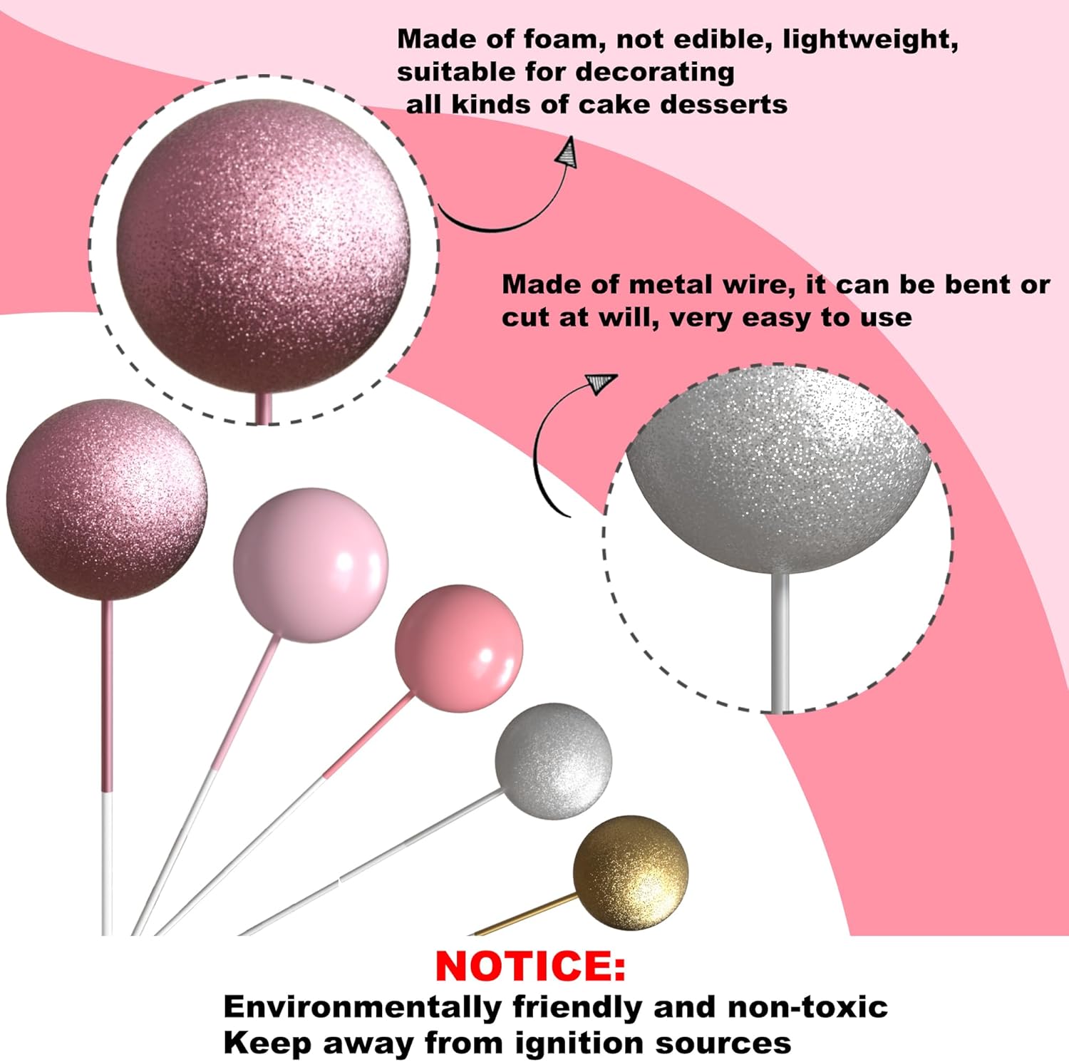 36 Pack Balls Cake Topper Decorations Foam Balloons Cake Decorations Mini Balloons Cake Toppers Balls Cake Picks for Baby Shower Wedding Anniversary Birthday Party Decorations Glitter Pink Gold Silver