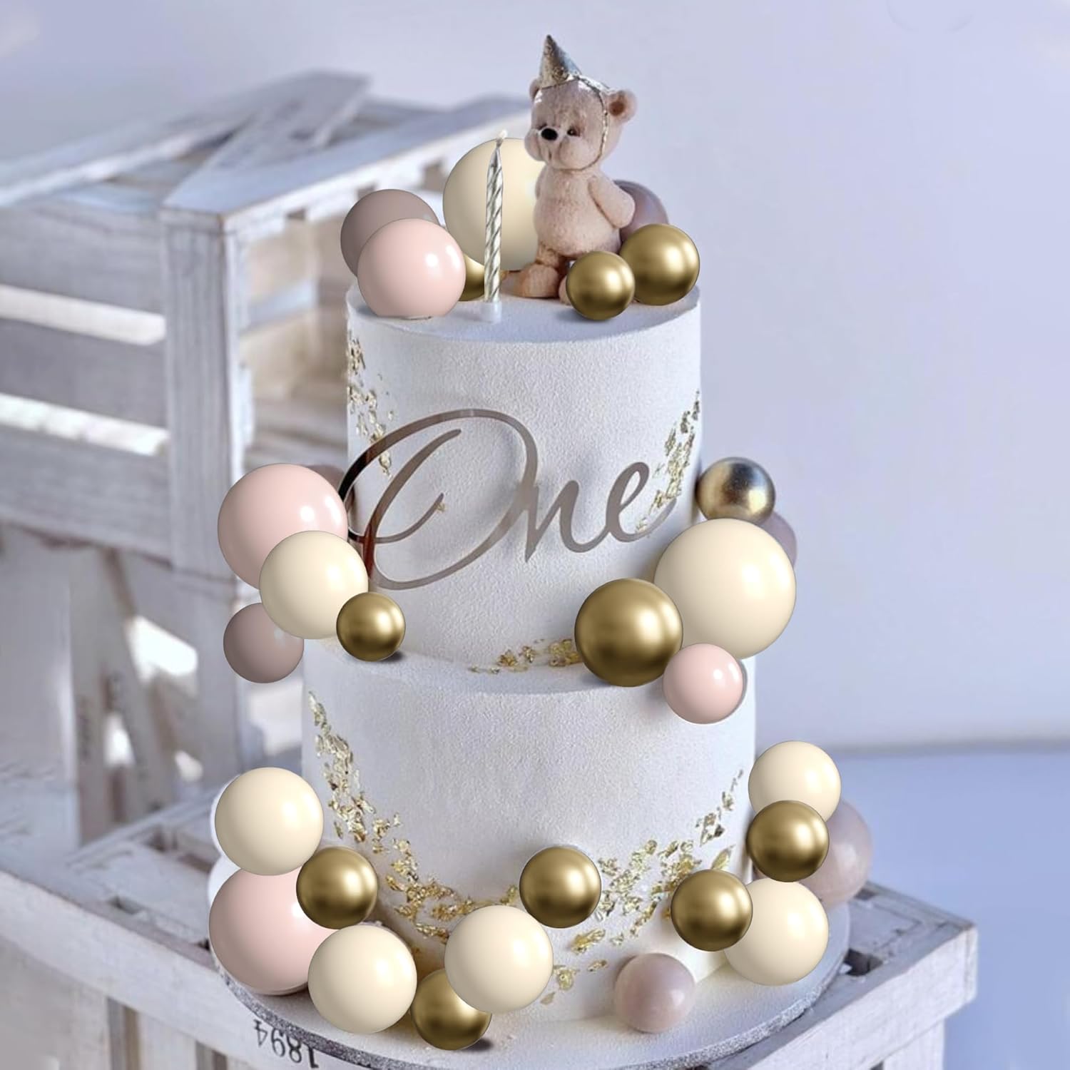 36 Pack Balls Cake Topper Decorations Foam Balloons Cake Decorations Sticks Mini Balloons Cake Toppers Balls Cake Picks for Baby Shower Wedding Anniversary Birthday Party Decorations Khaki Gold