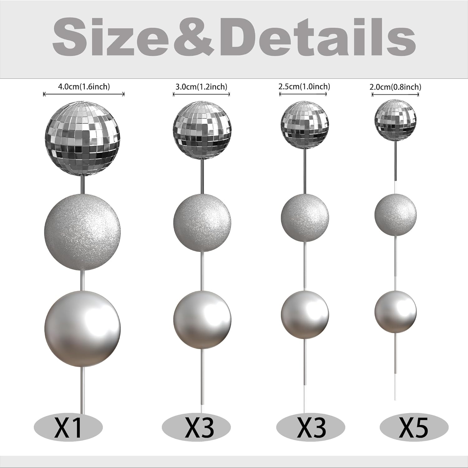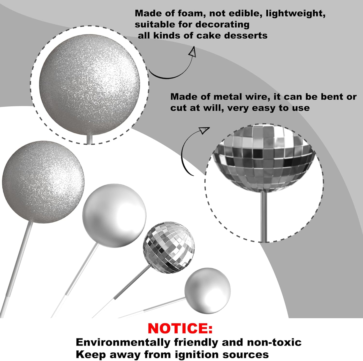 36 Pack Balls Cake Topper Decorations Foam Balloons Cake Decorations Sticks Mini Balloons Cake Toppers Balls Cake Picks for Baby Shower Wedding Anniversary Birthday Party Decorations Light Silver