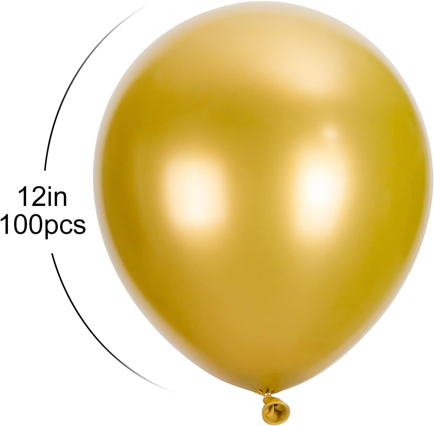 - 【WHAT YOU WILL GET】100pcs 12 inch party balloons in Metallic Gold color +2 rolls of gold ribbons.