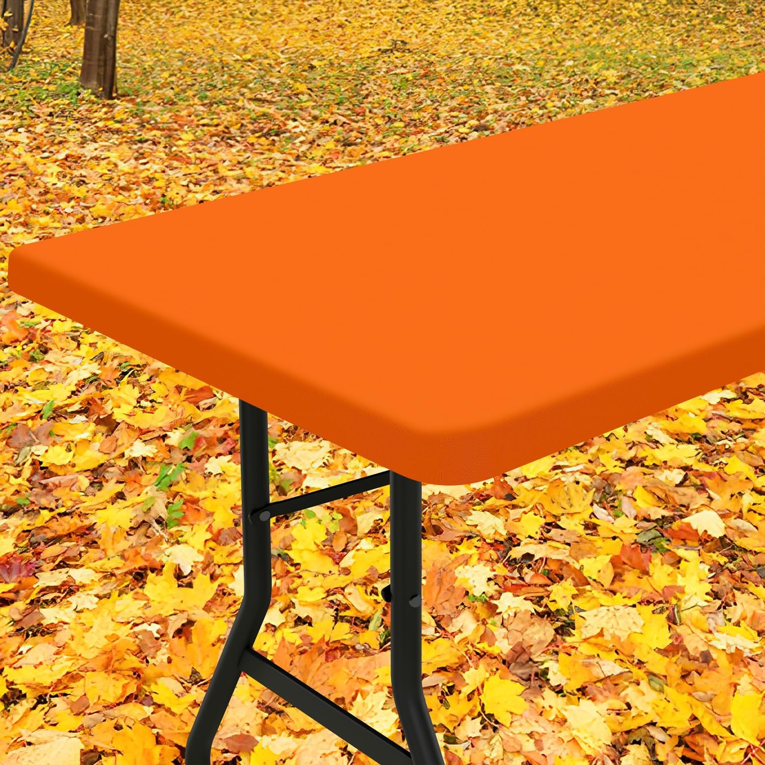 Smiry Rectangle Tablecloth, Elastic Fitted Flannel Backed Vinyl Tablecloths for 6ft Folding Tables, Waterproof Wipeable Table Covers for Indoor, Outdoor, Picnic and Camping (Orange, 30"x72")