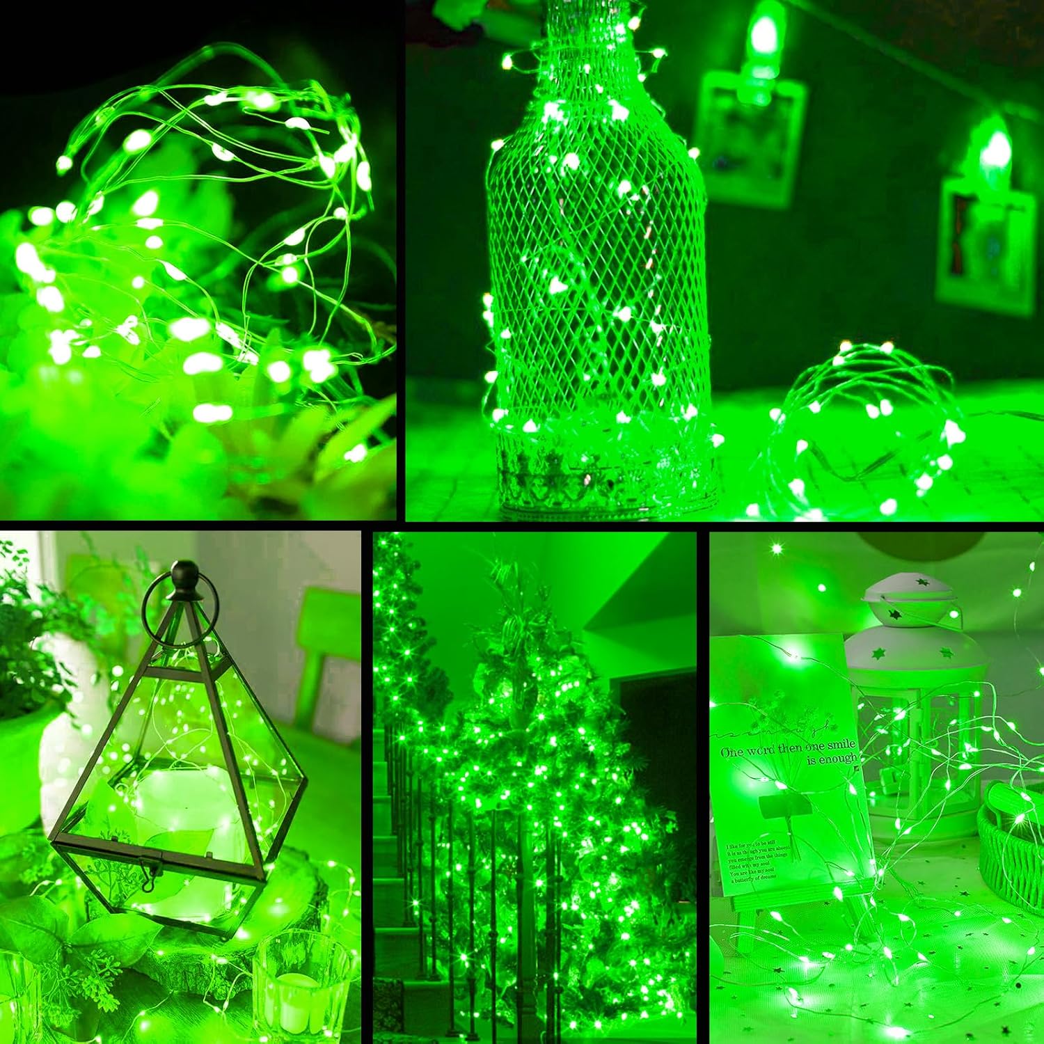 ZGWJ 100 Pack Fairy Lights Battery Operated, 7ft 20 Mini LED Fairy String Lights Silver Wire 3 Modes for DIY, Parties, Wedding, Bedroom, Halloween Christmas Decoration Green