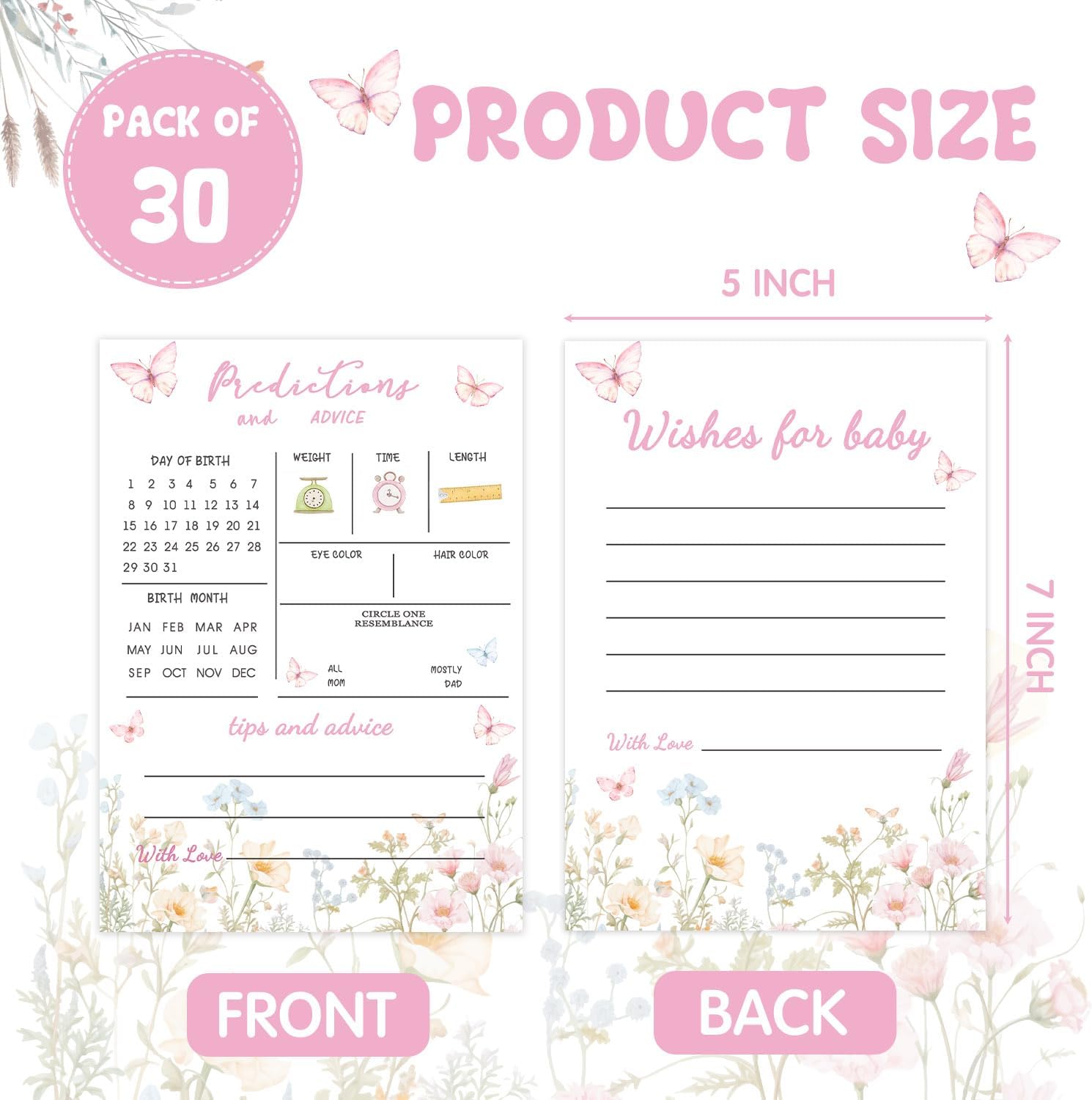 - Complete Set with Ideal Size: Includes 30 double sided butterfly baby prediction and Butterfly advice cards, each measuring 5 x 7 inches the perfect size for writing heartfelt wishes, parenting tips, and fun baby arrival guesses.