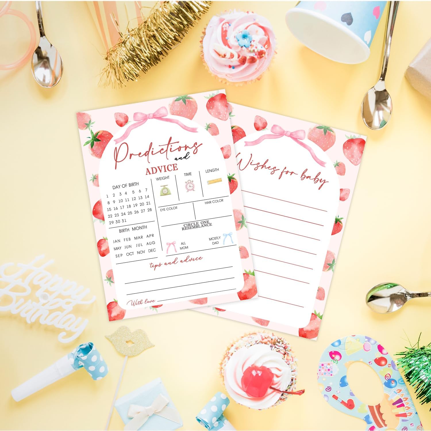 - Card Set in Ideal Size: Includes 30 strawberry themed baby prediction and advice cards, each measuring 5 x 7 inches. The perfect size for guests to write their heartfelt wishes, parenting tips, and fun baby guesses.