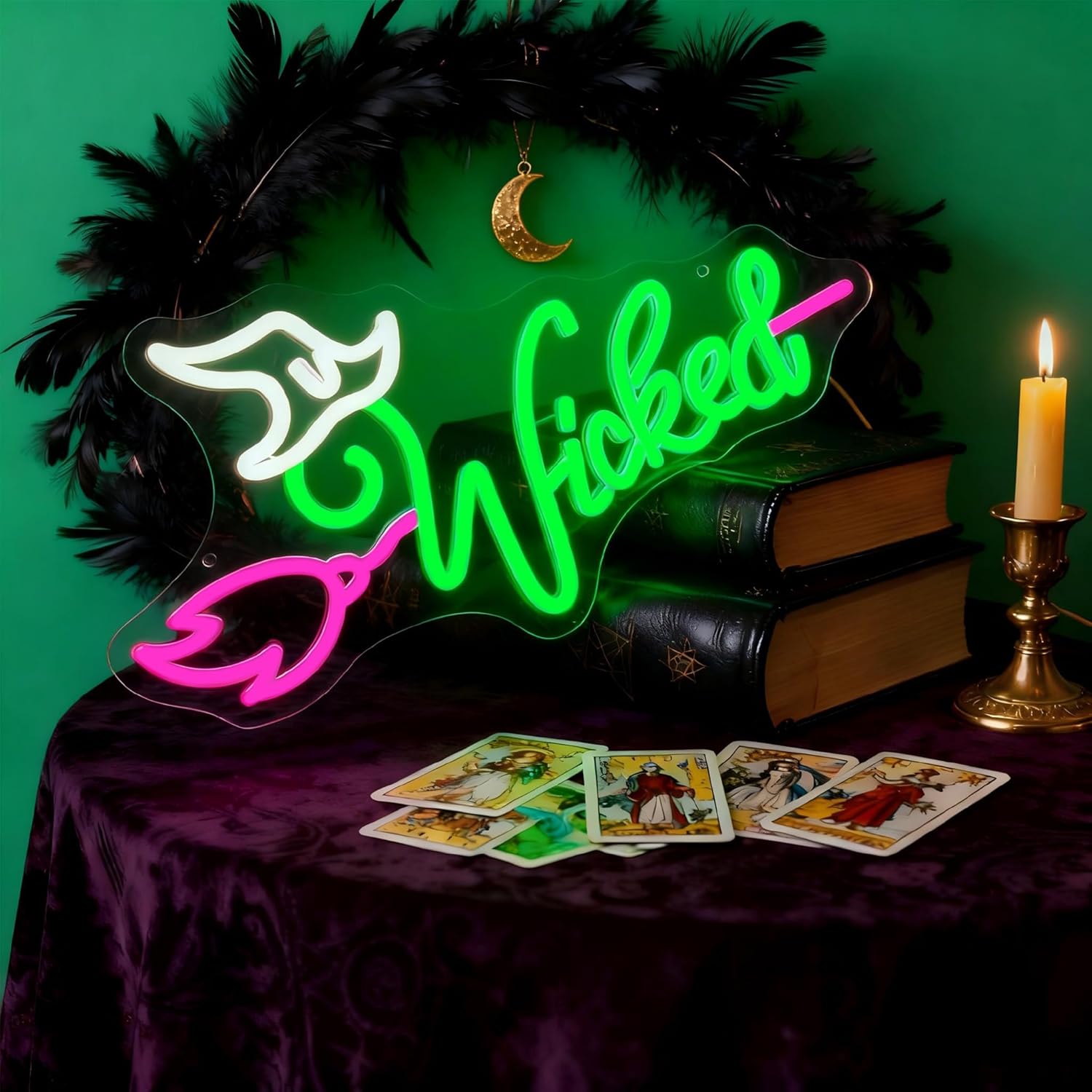 - Witch Neon Light: The classic design transports you to the enchanting world of magic ,The green and pink light ignites movie nights&themed party.It's also a cute and scary decoration for Halloween,It looks very sweet and cool