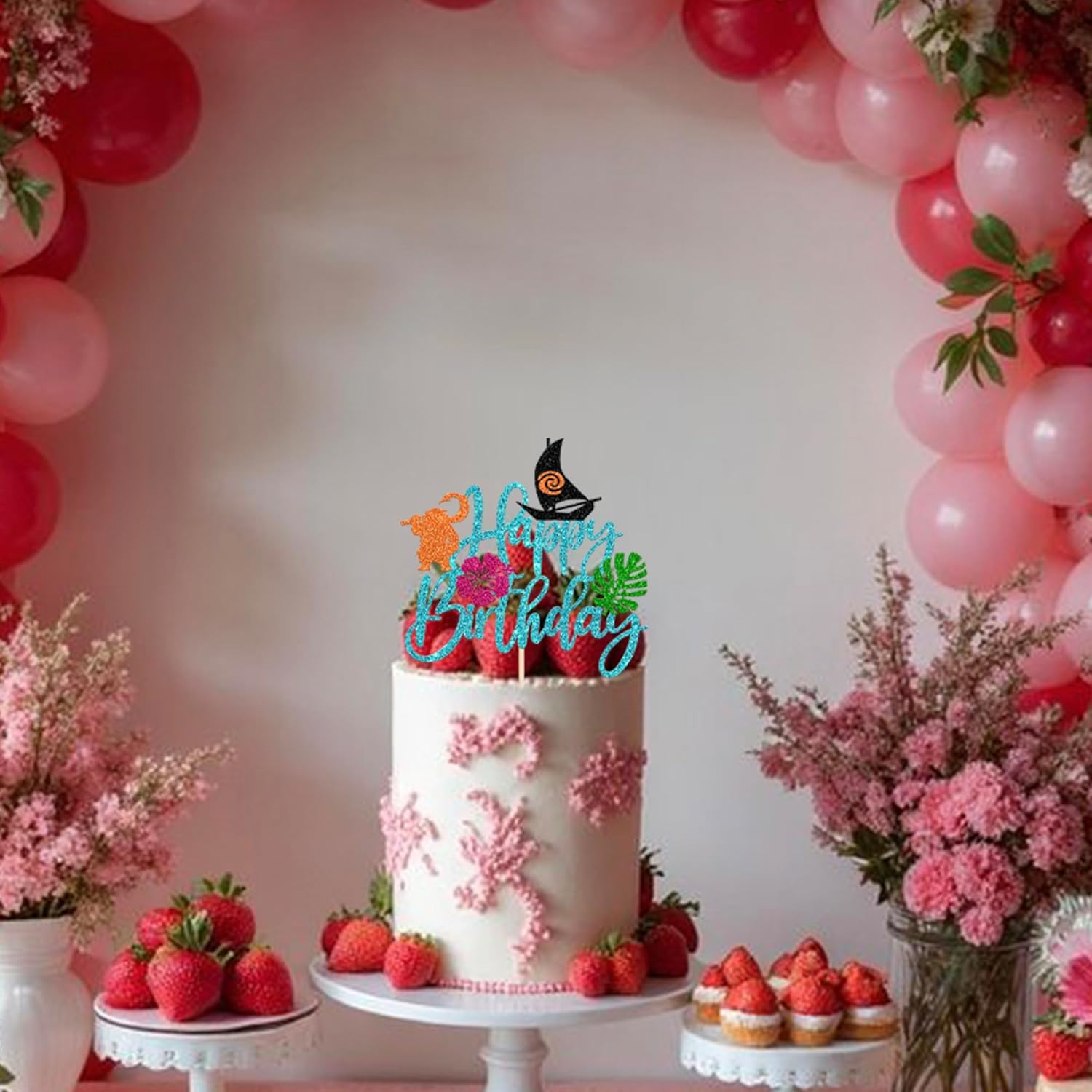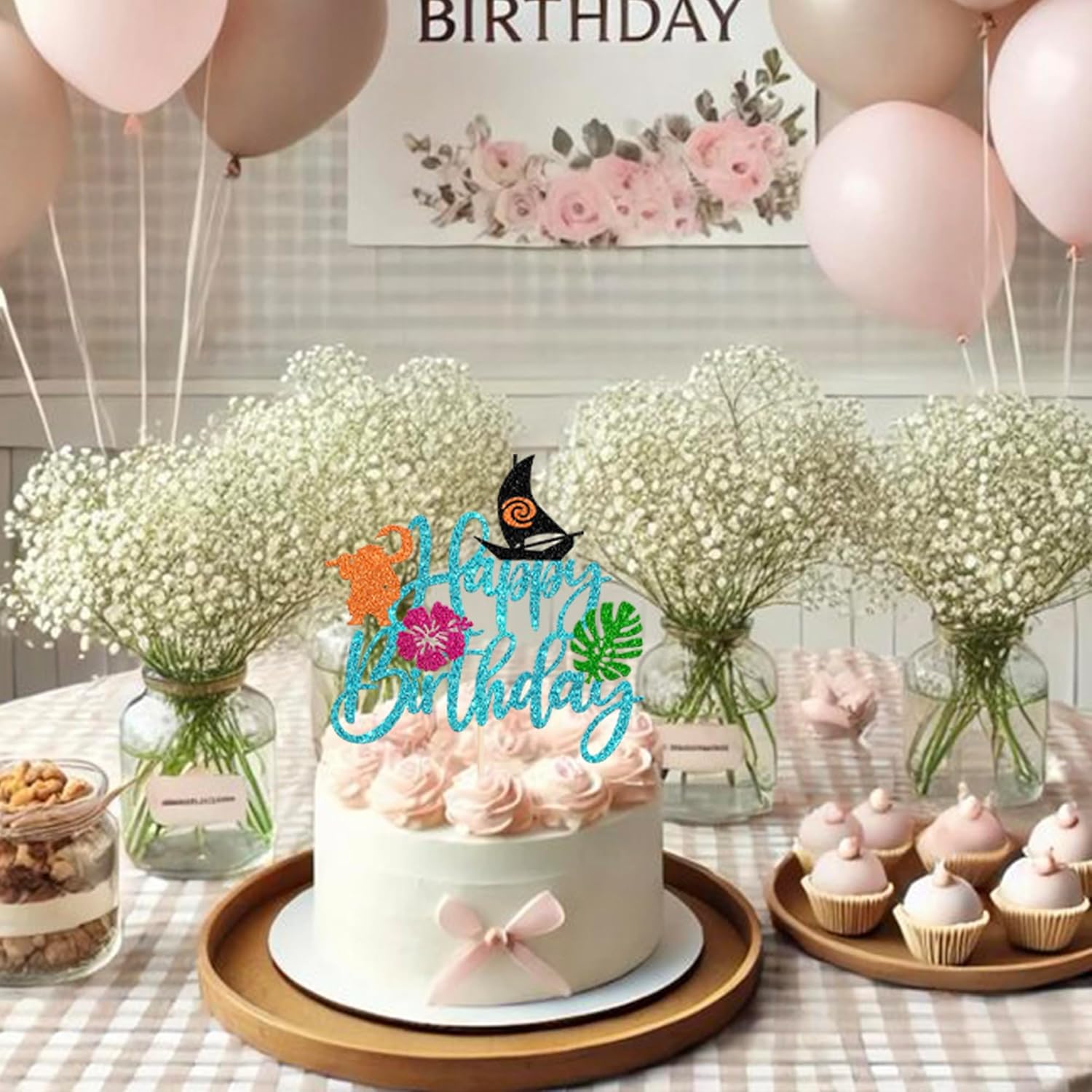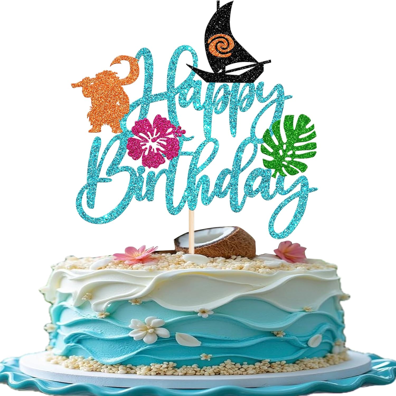 1 Pack Moana Cake Toppers Glitter Palm Leaf Moana Cake Picks The Sea is Calling Hawaiian Tropical Cupcake Decorations for Luau Summer Baby Shower Birthday Party Supplies Blue