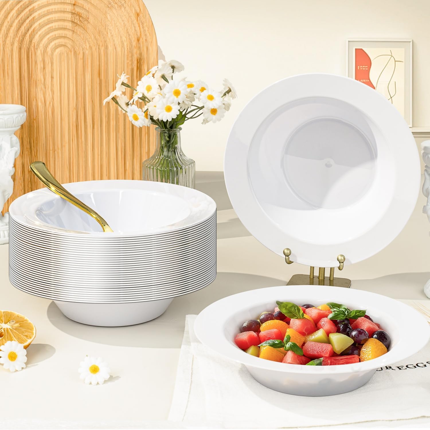 - Convenient Set: This 50-pack set of white plastic bowls is ideal for everything from large parties to family gatherings; these disposable serving bowls enable quick cleanup, saving you time so you can focus on enjoying the occasion