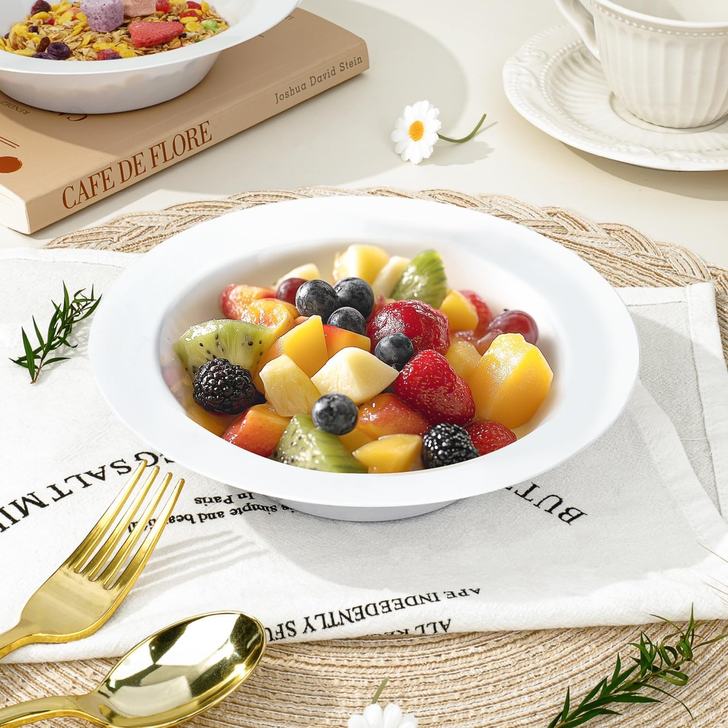 - Elegant Design: These plastic dessert bowls feature a minimalist, classic, pure-white design that elevates any table setting; the white disposable bowls mimic ceramic, offering a smooth, glossy texture that enhances the overall dining experience
