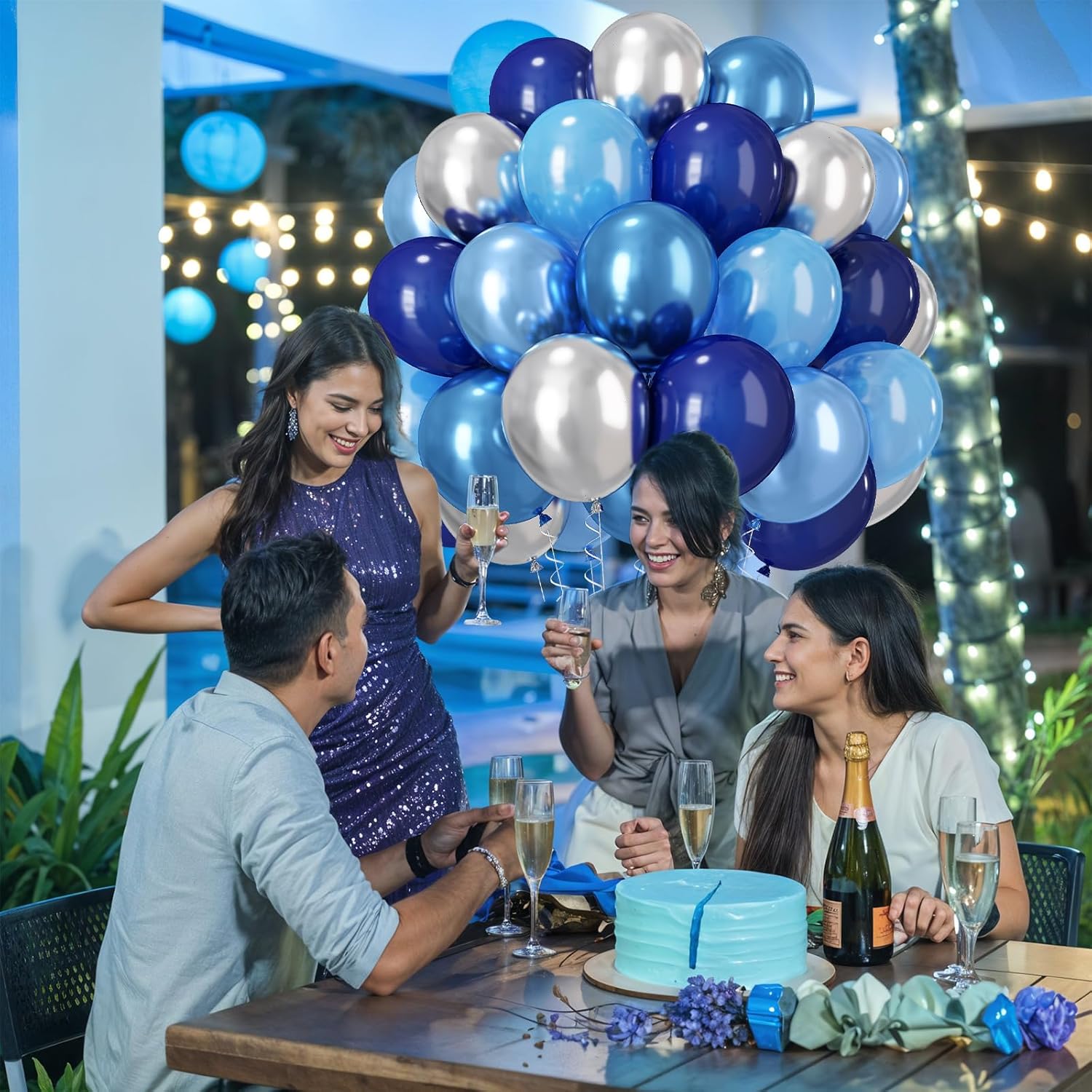 - Versatile for Any Occasion: These metallic and pearl blue party balloons bring timeless elegance to any occasion. Blue silver birthday decorations, baby shower, graduation, or retirement celebration, anniversary parties, engagement events, wedding receptions, Christmas gatherings, or even a chic bachelorette. Use them for photo backdrops to instantly elevate your space with a sophisticated blue and silver palette