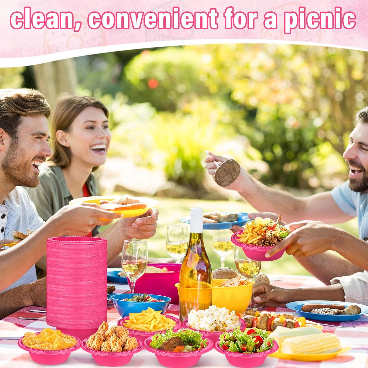 - Rich in Quantity: you will receive 100 pieces of plastic disposable bowls in hot pink color, enough quantity and classic color to meet your needs and replacements, and you can also share some with your friends and family members
