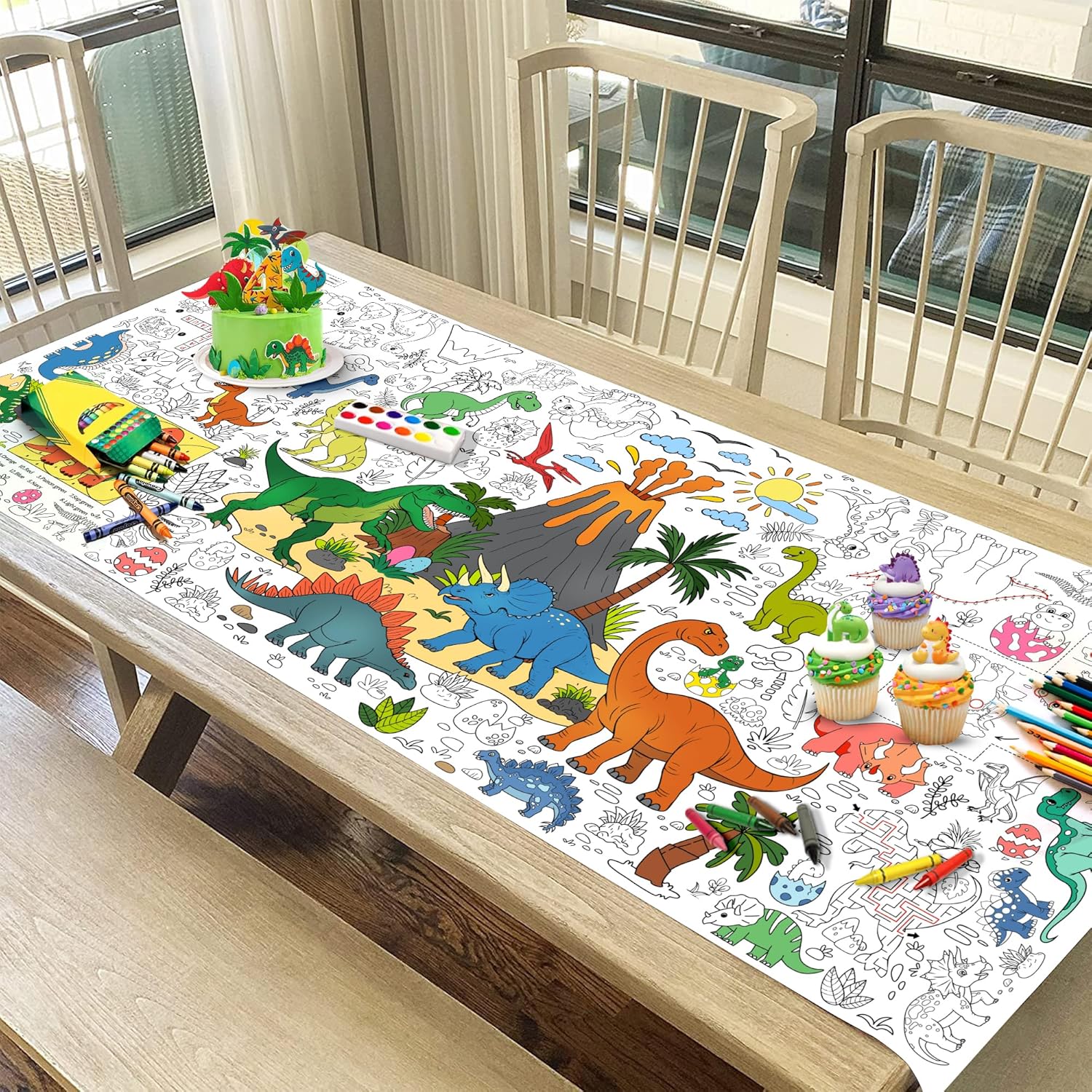 - Proper Size for Easy Use: Measuring 72inch x 30inch, this jumbo Dinosaur coloring table cloth fits most tables and providing ample space for group coloring, perfect as a table-sized coloring sheet or activity tablecloth for kids