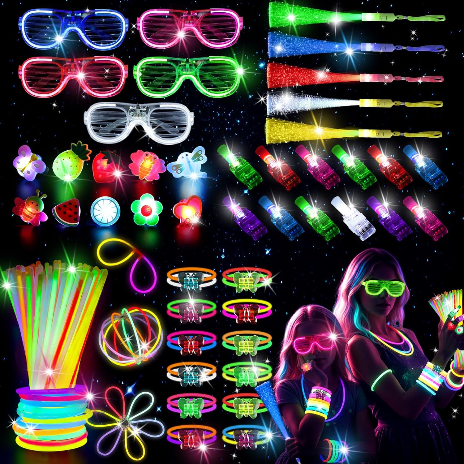 - 【Glow-Up Party Kit】: This massive glow sticks bulk party pack includes 260 light-up items: glasses, glow sticks, bracelets, finger lights, and more. Ideal glow party supplies for group fun, costumes, and all types of events