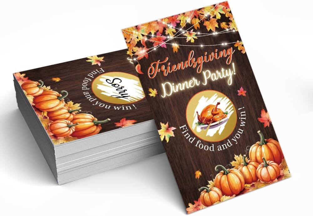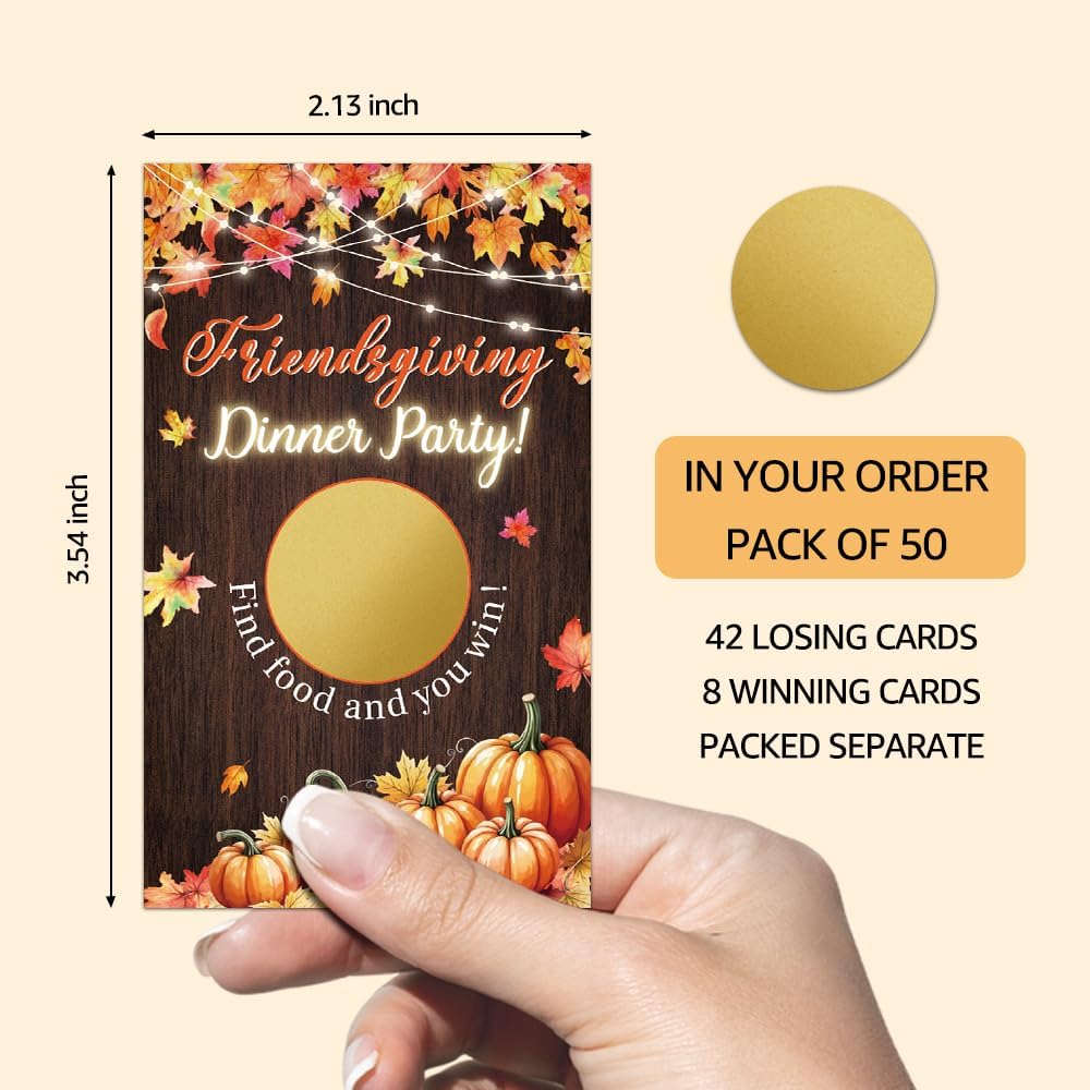 50 Pack Friendsgiving Dinner Party Scratch Off Game, Turkey Scratch Cards for Dinner Game, Thanksgiving Raffle Tickets for Birthday Games, Baby Shower, Fall Thank You Party Games