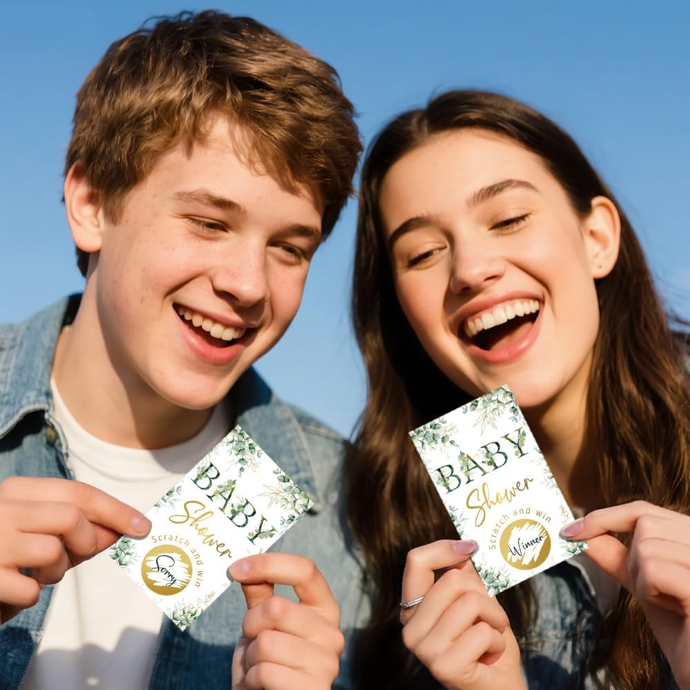 50 Pack Baby Shower Eucalyptus Theme Scratch Off Game, Natural Plants Scratch Card for Birthday Party Lottery Games Group Games Family Activity, Baby Shower Activity and Idea